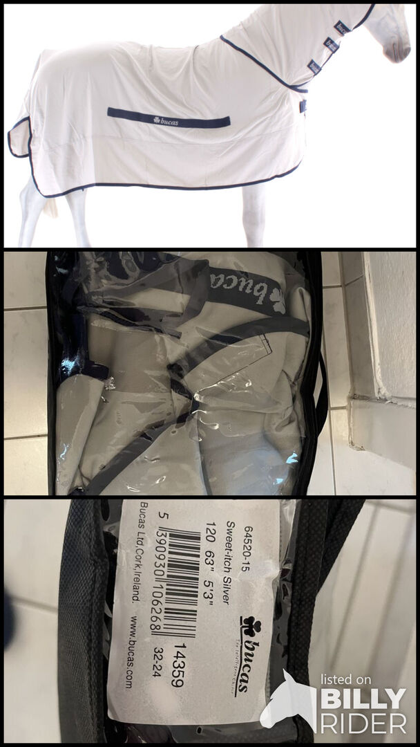 Bucas Sweet Itch zilver 120cm eczeemdeken NIEUW - De ademende stof voorkomt dat het paard overmatig zweet en droogt goed na een regenbui. De robuuste stof biedt het paard de beste UV-bescherming
