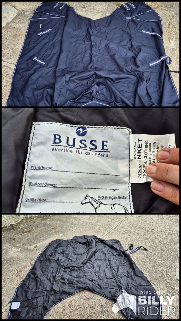 Busse buitenkleed 145cm - Ik bied een nauwelijks gedragen buitenkleed van Busse aan, zo goed als nieuw zelfs. Het heeft een gladde binnenvoering, helaas weet ik niet meer hoeveel vulling en staat het nergens. Maar ik denk 100gr of 150gr. Het is gewassen en waterdicht gemaakt
