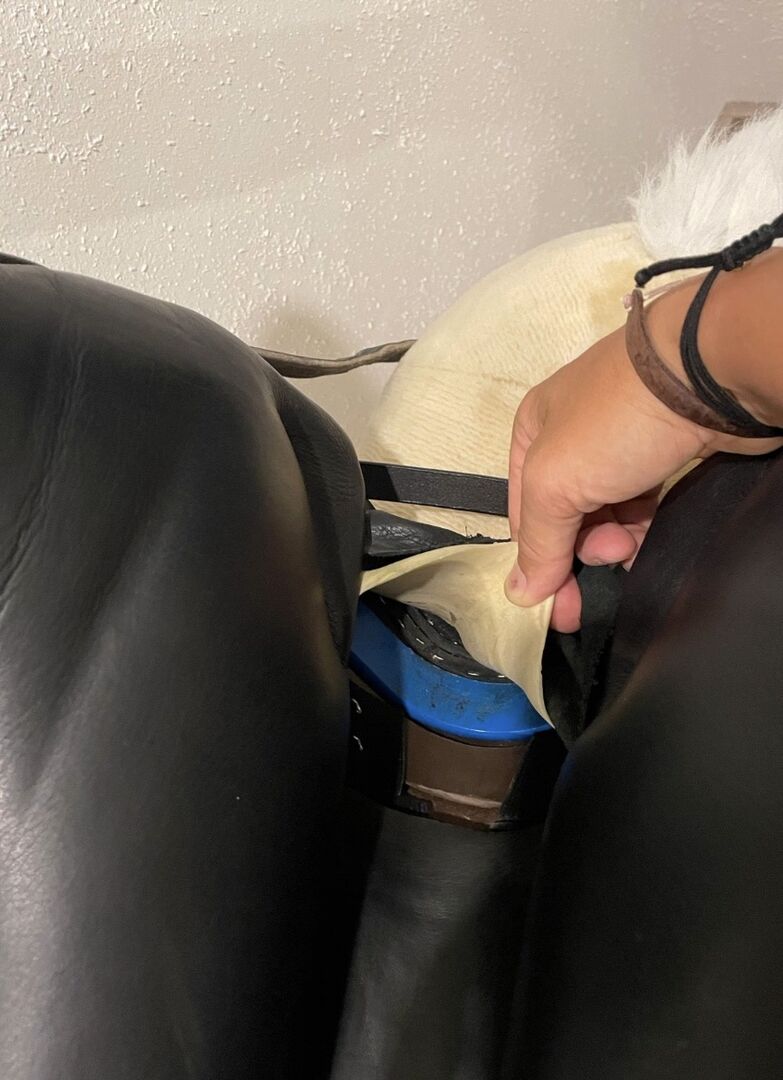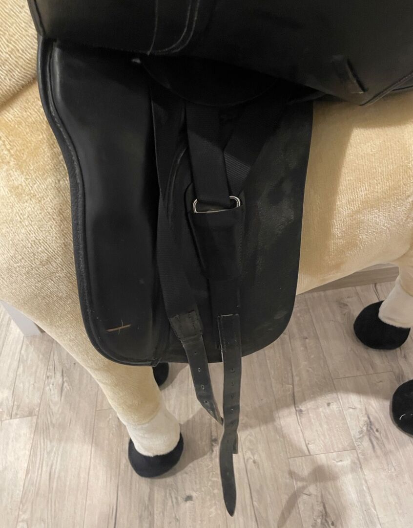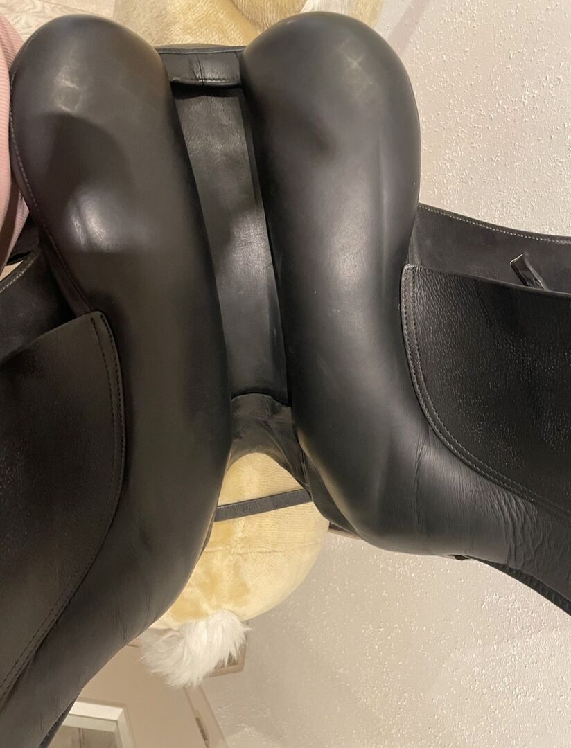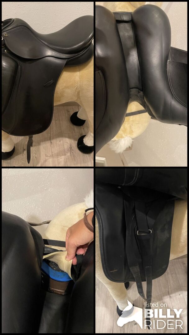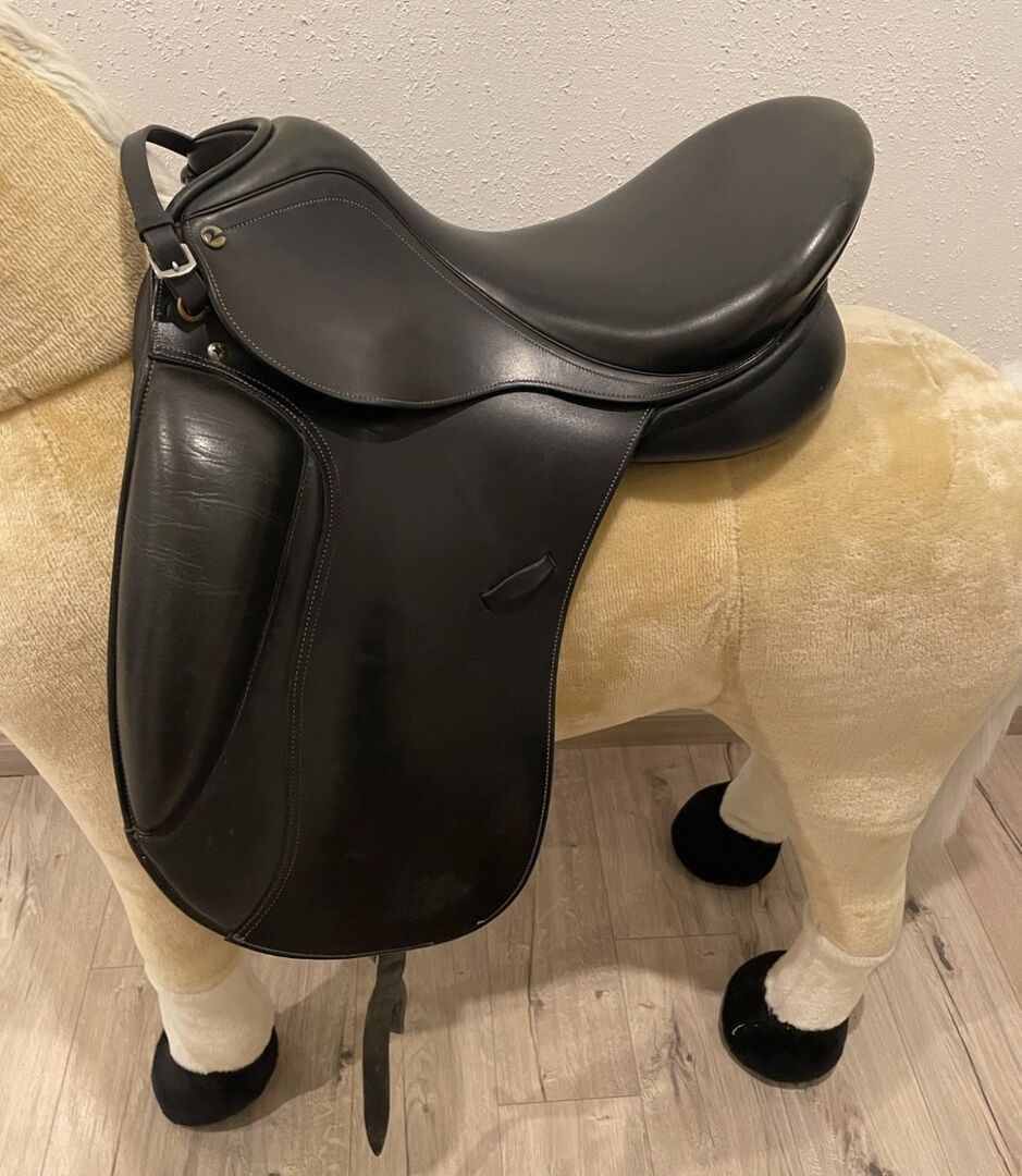 Busse Dressuurzadel - In zeer goede staat. Blauwe slokdarmplaat. Geschikt voor korte paarden.