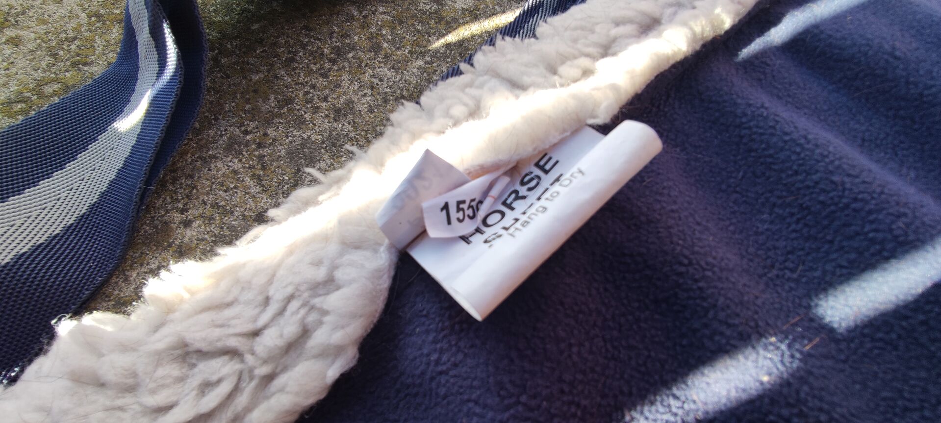Busse paarden wandeldeken donkerblauw 155cm - Donkerblauwe stapdeken met teddybont op hals van Busse