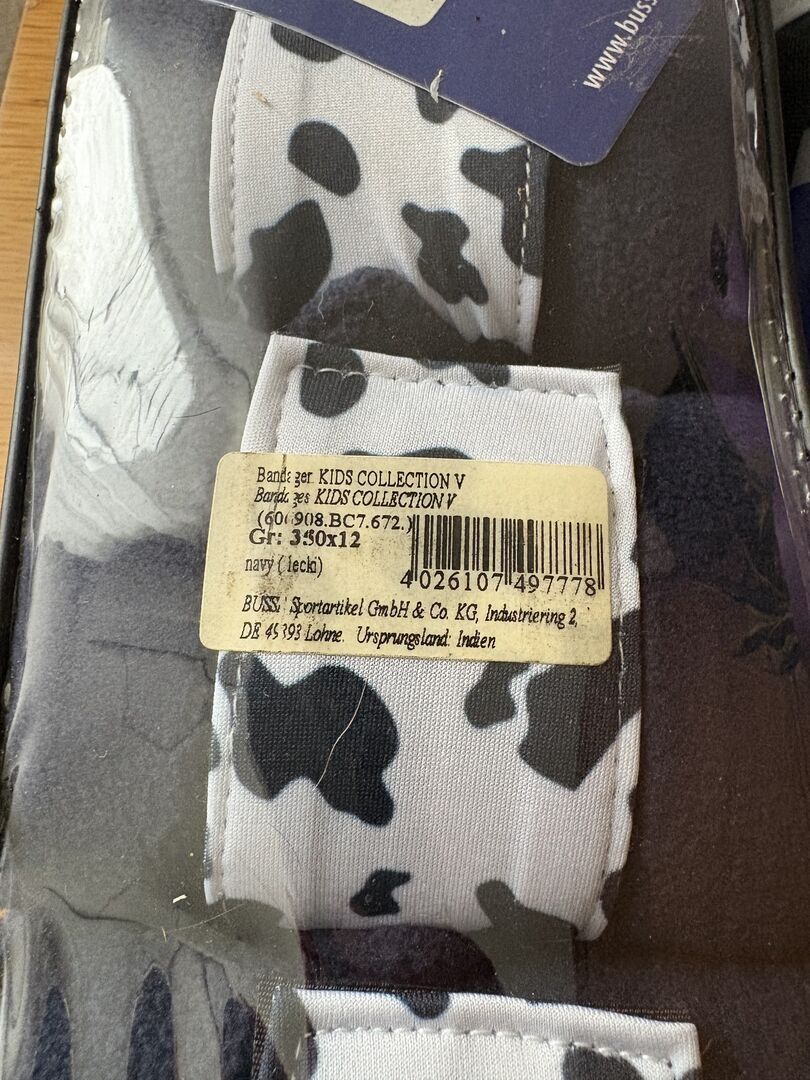 Busse Verbandmiddelen Collectie Kinderen - Te koop zijn bandages uit de Kids Collection van Busse in koeienvlekken. Eén bandage in maat VB en één in maat pony. Beide volledig ongebruikt! Beide in maat 10 Euro.