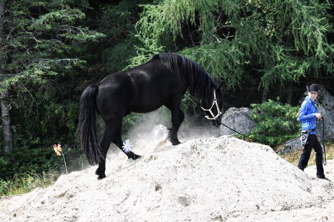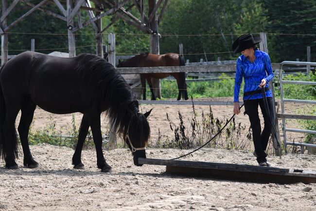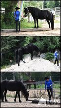 Hij vertrouwt zijn mensen in elke situatie. Hij kent al veel hindernissen en taken vanaf de grond, omdat hij hier goed op is voorbereid - het opbouwen van verbinding, vertrouwen en communicatie. Longeren en vastbinden zijn geen probleem voor hem.