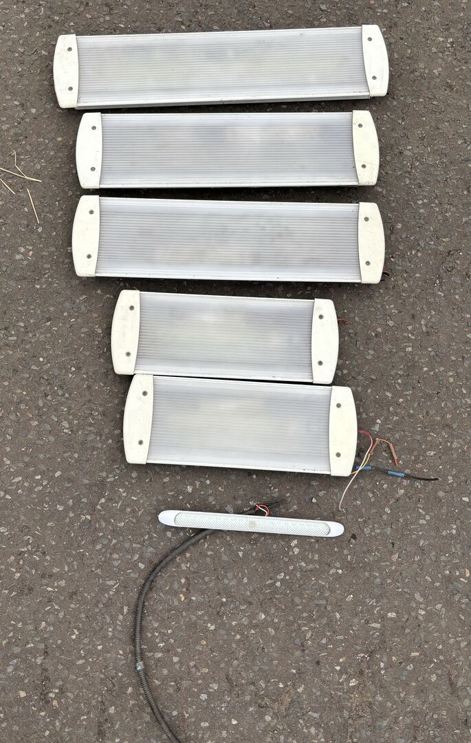 Job lot of caravan/horsebox LED lights. Have been used but still in working condition. Manufactured by Dutch Electronic Comapny, DEMCO. Approximate sizes are as follows:
