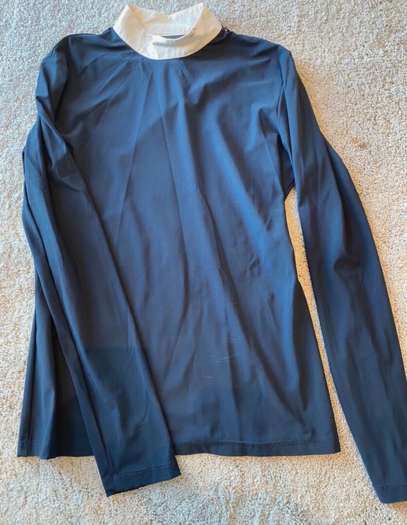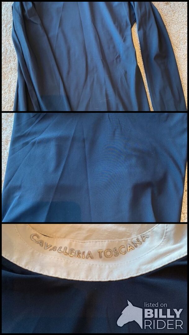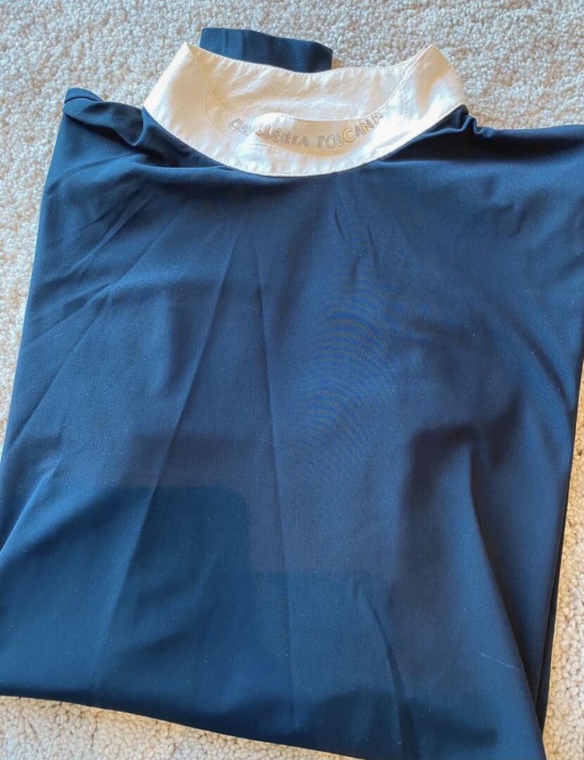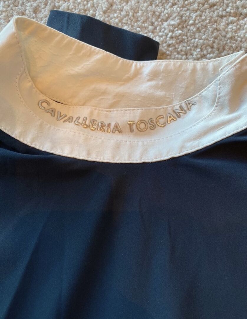 Cavalleria Toscana show shirt maat M - Show shirt lange mouw van Cavalleria Toscana kleur: donkerblauw maat: M Helaas heeft het logo een beetje geleden tijdens het wassen, verder in prima staat en niet veel gedragen.
