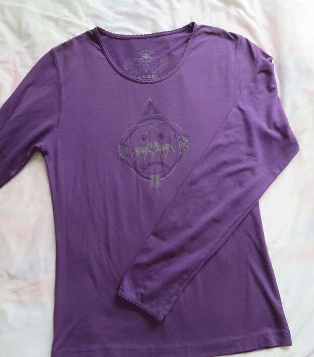 Top Shirt von Cavallo 'Coolmax', TOP-zUSTAND. Leichtes Material, fällt locker, schöne Farbe aubergine/lila. Gr. S, fällt auch so aus, Weite von Achsel zu Achsel ca. 44/45cm. Abholung oder günstige Warensendung für 2,25€.
