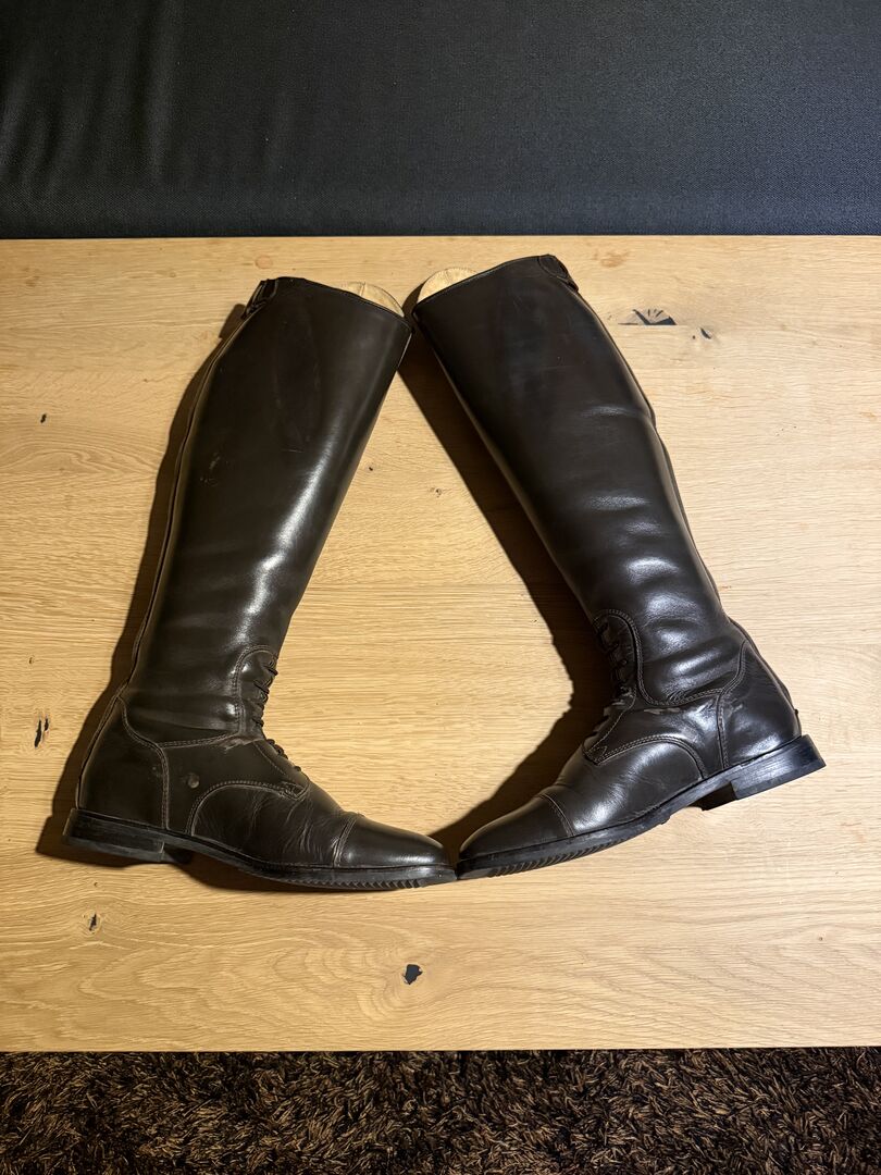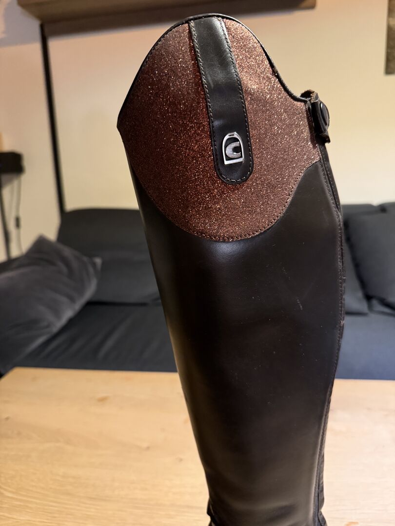 Cavallo junior jump bling mokka bruin leren laarzen rijlaarzen stal - Een zomer lang gedragen en elke week schoongemaakt en verzorgd. Heb nu nieuwe in het zwart en helaas moeten deze weg. Ze zijn maat 5 1/2 48 35 en werden alleen gebruikt voor normaal rijden 1-2 keer per week. Nieuwprijs was 400€ :(