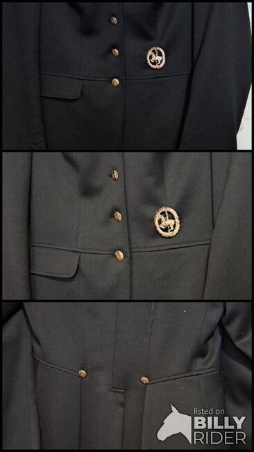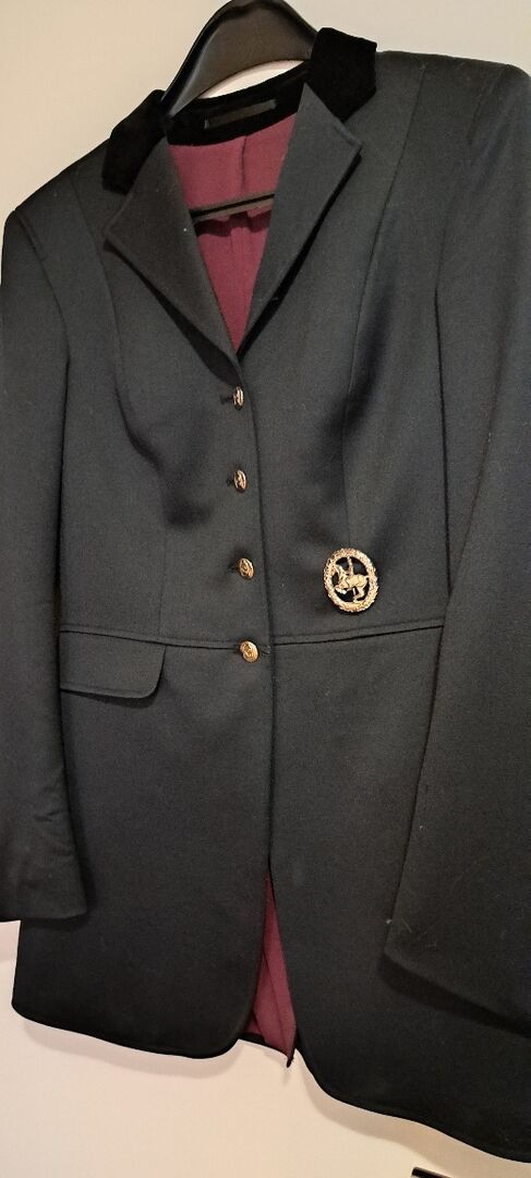 Cavallo toernooi-jack - Ik wil mijn goede wedstrijdjas verkopen omdat ik stop met paardrijden. Donkerblauw met zwarte fluwelen kraag. Het is de oudere stijl, dijlengte. Heel elegant. Voor een langere, slanke ruiter. Originele maat: 80, maar valt niet groot. Tegen een kleine vergoeding: 10,- €. Zonder de speld (zilveren badge).
