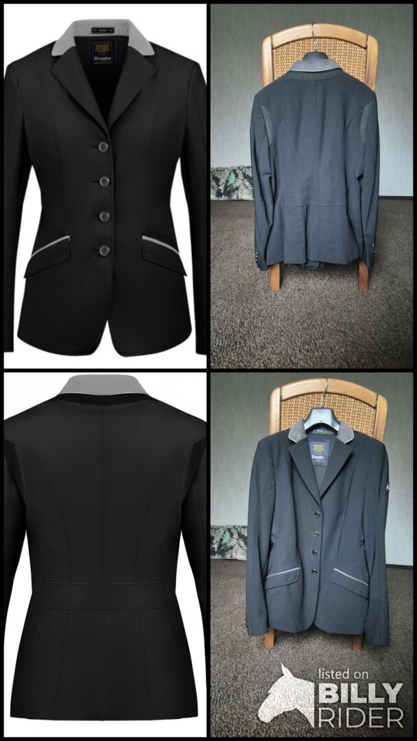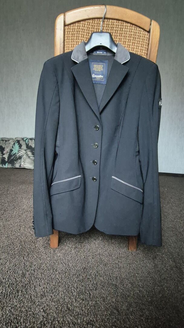 Cavallo wedstrijdjas wedstrijdjas , M , zwart/grijs - CAVALLO Estoril wedstrijdjas met acantara kraag - in zwart & grijs - Maat: M / 38 - zeer goede staat, als nieuw - alle knopen aanwezig, ook de reserveknopen - komt uit een huisdiervrij, rookvrij huishouden
