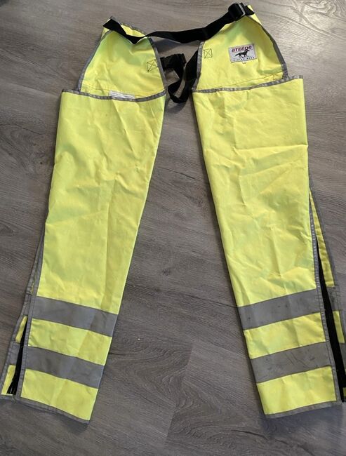 Chaps in neongeel - Denk nu alvast aan het donkere seizoen. Hier zijn mooie chaps te koop die je om je benen kunt binden zodat je beter te zien bent in het donkere seizoen. De chaps hebben maat S