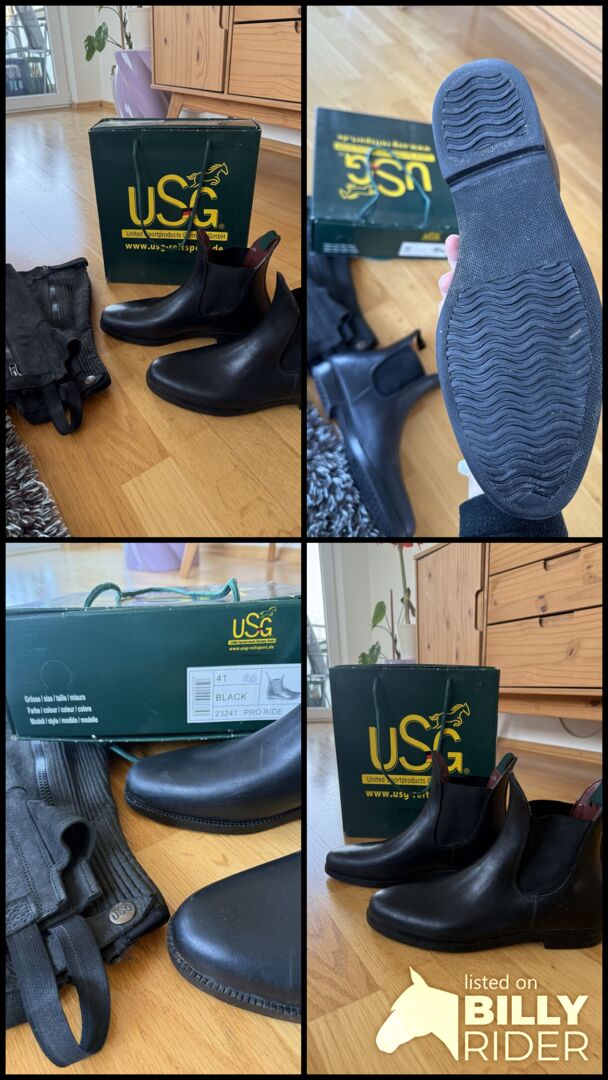 Chaps + schachten - in zeer goede staat - Zeer goede staat paardrijchaps + schachten van USG in maat 41