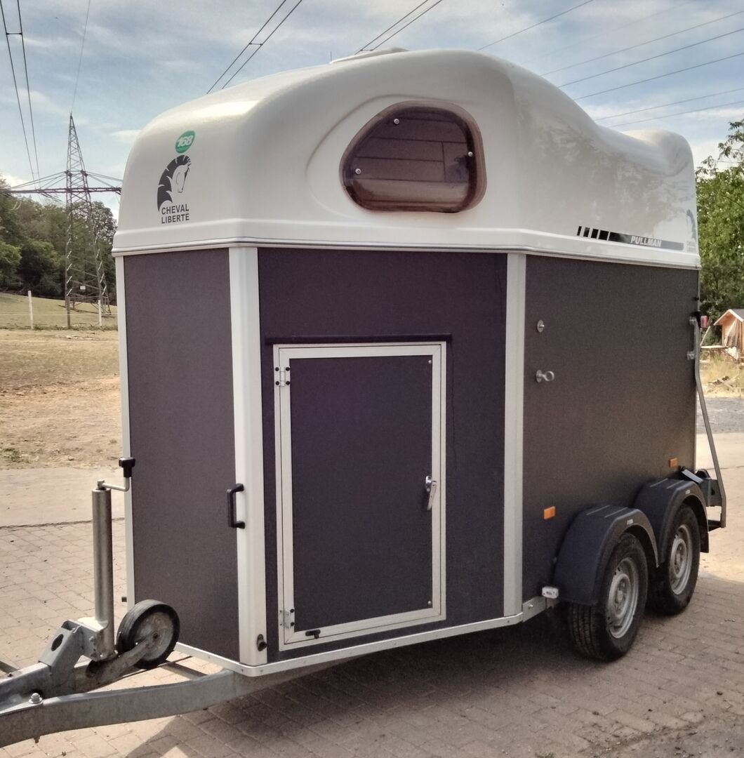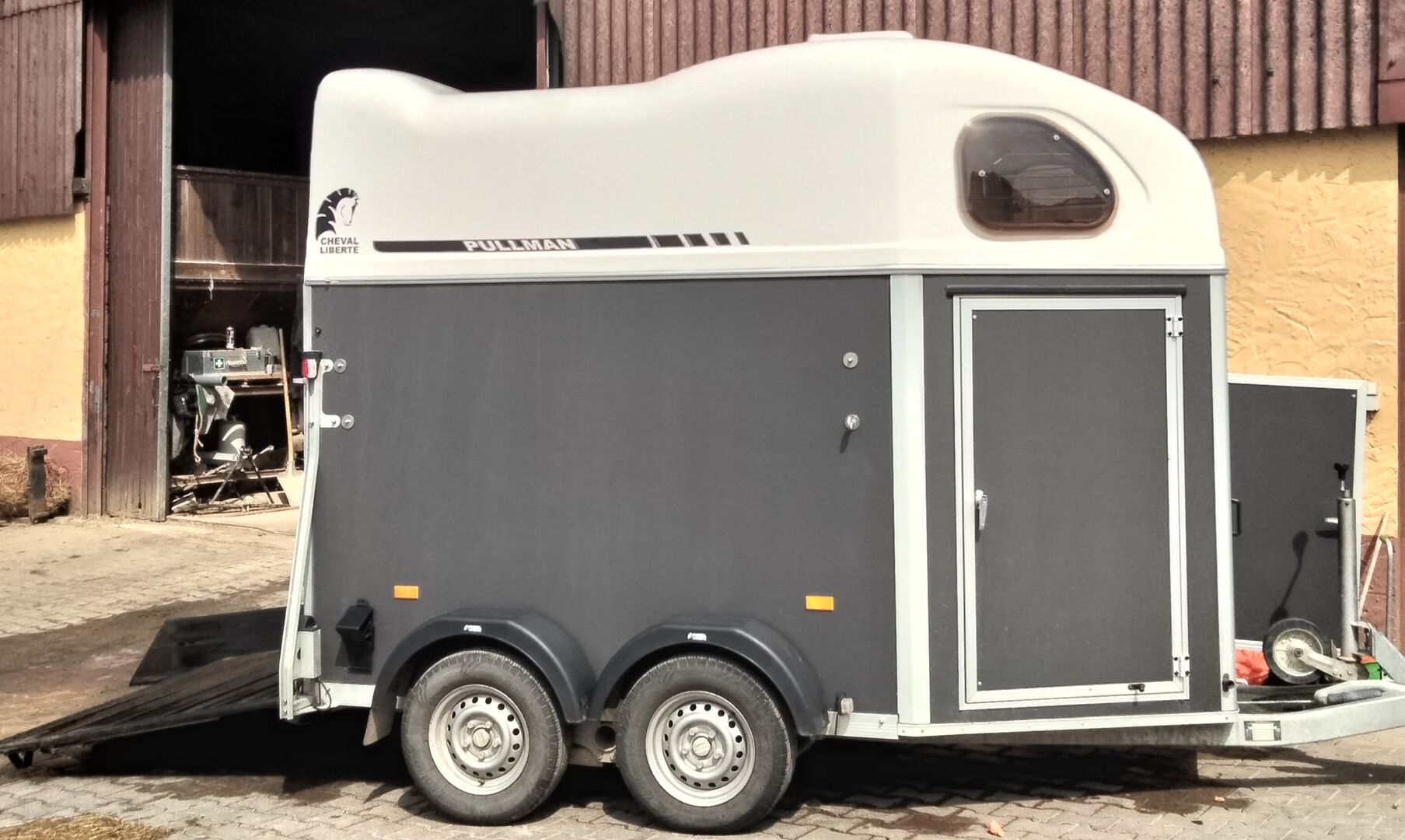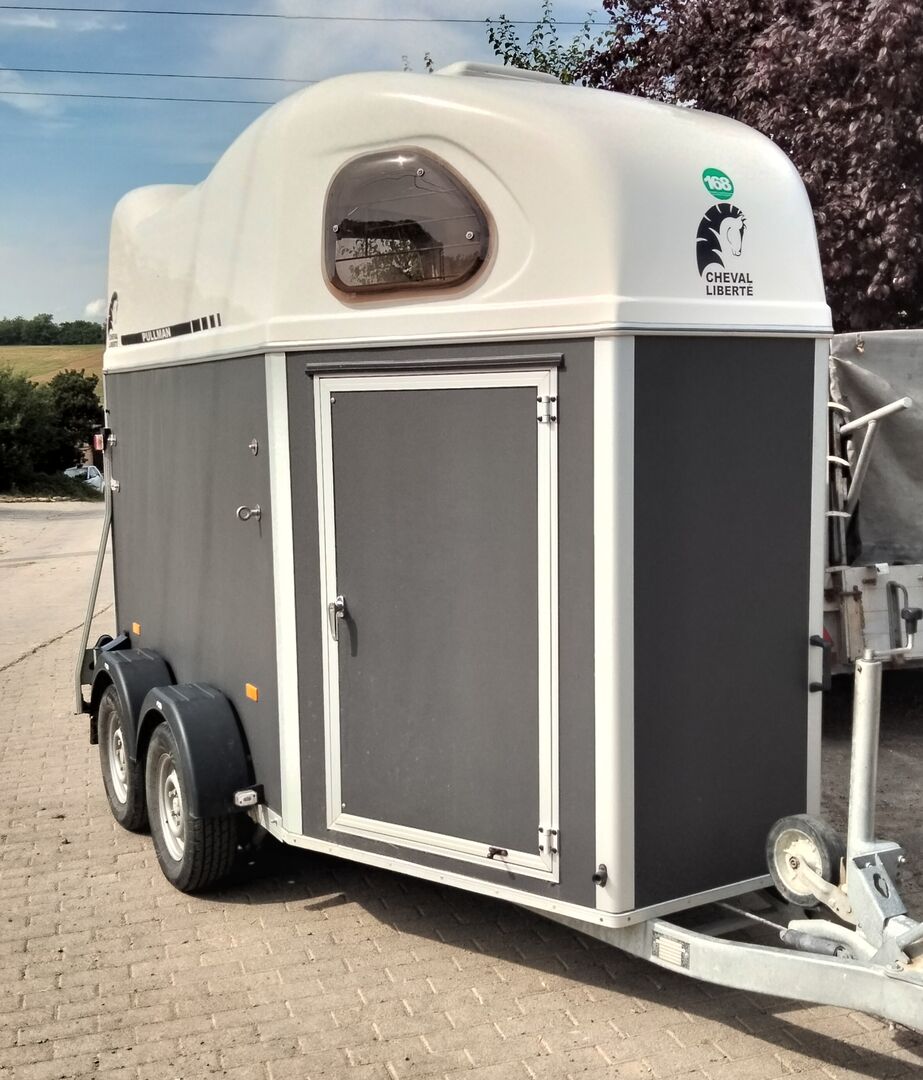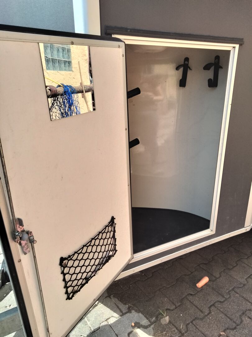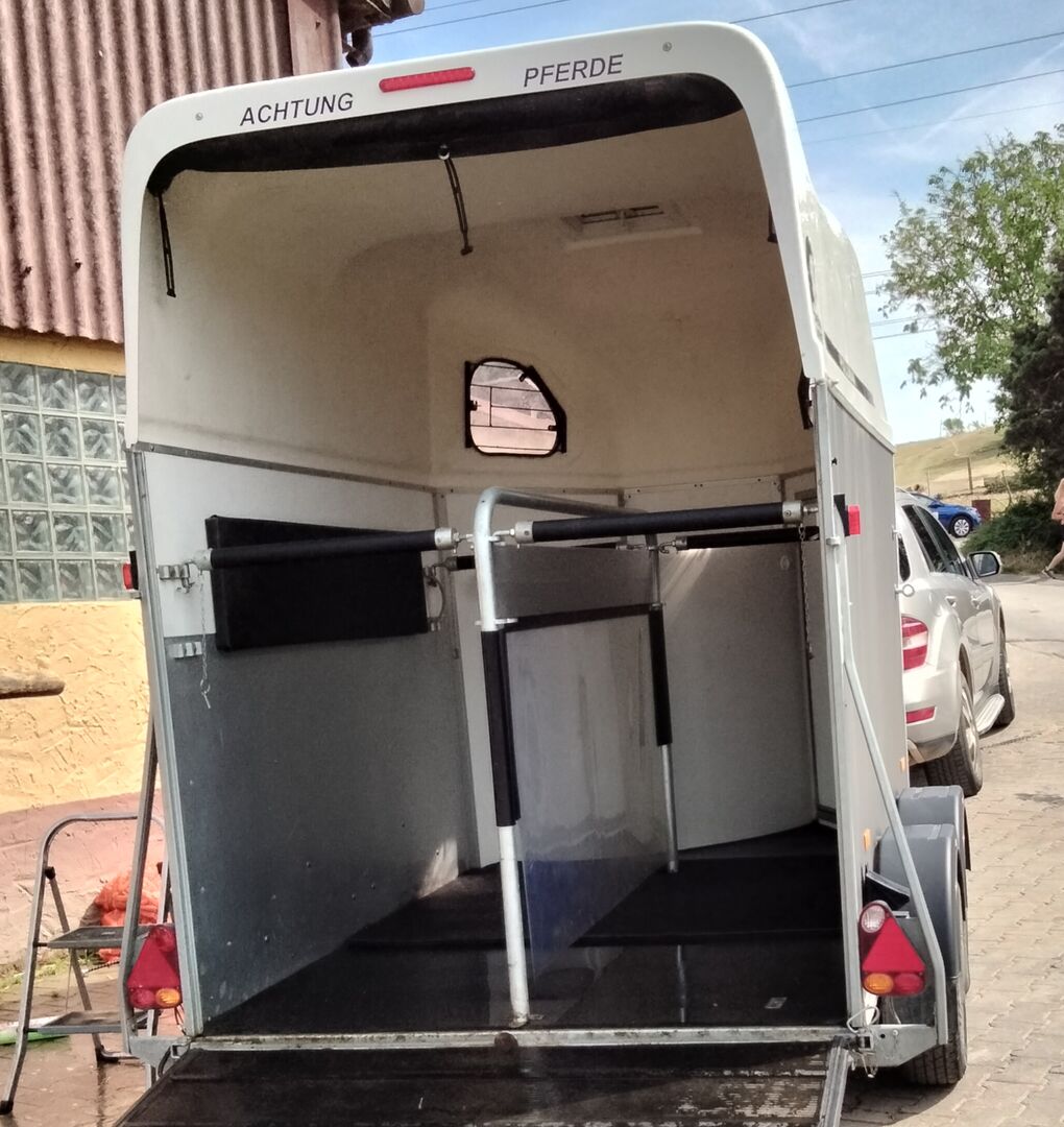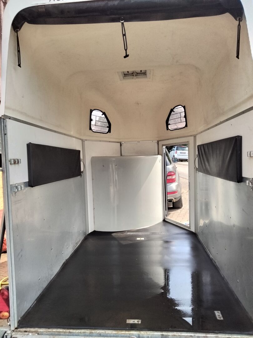 De paardentrailer heeft een aluminium vloer, is goedgekeurd voor 100 km/u, de zadelhouders kunnen worden uitgezwaaid en de trailerhelling.