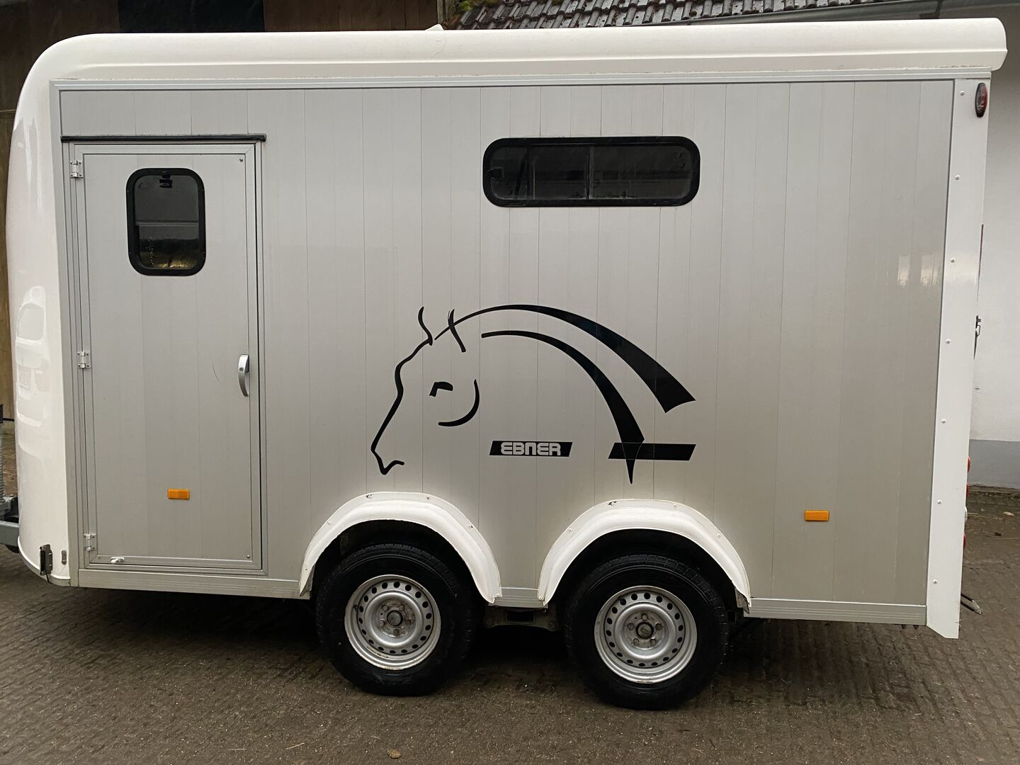 toelaatbaar totaalgewicht: 3.000 kg Leeggewicht ca.: 1.250 kg Inwendige afmetingen: 4.000 mm x 2.070 mm x 2.250 mm Totale afmetingen: 5.240 mm x 2.300 mm x 2.630 mm Pullmann 2 - Chassis Aluminium vloer, aluminium wanden Zijstapbescherming, aluminium pakket (aluminium wanden, aluminium vloer) 1 groot en 2 kleine schuiframen, brede zijklep rechts, ventilatieraam aan de linkerkant, frontuitgang aan de rechterkant, Verrijdbare scheidingswanden van zwart KTL-gecoat aluminium met transparante schorten, hengstenrooster, Dekenrek binnen links, Grote zadelkamer met toegangsdeur, ventilatieraam, 2 dakventilatoren, zadel- en hoofdstelhouder, spiegel, oprijplaat achter + Airtech dekzeil, Reservewiel met houder in de zadelkamer, binnenverlichting. Bindstang buiten