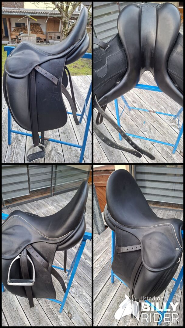 Childeric dressuurzadel DAC DGP 17", Swarovski, lichtgekleurde doorstiksels - Childeric dressuurzadel DAC DGP 17" in zwart met Swarovski-kristallen op de pommel en lichtgekleurde sierstiksels