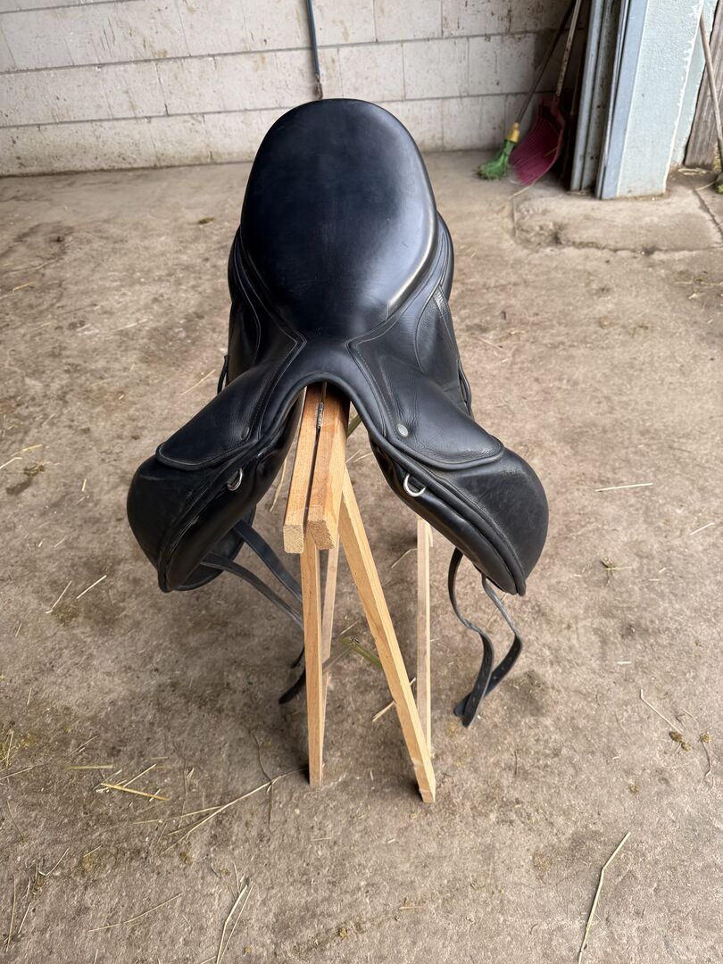 De originele Childeric zadelklep wordt meegeleverd. Het zadel is ideaal voor ambitieuze dressuurruiters die waarde hechten aan kwaliteit en comfort.