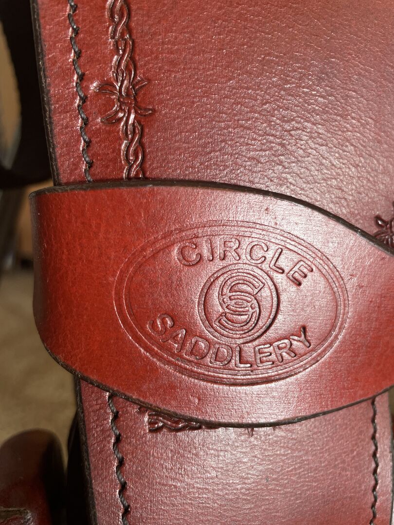 Circle S Trail Saddle with smooth leather and a padded seat. Barbwire trim. Excellent condition, only 1 or 2 blemishes on leather.