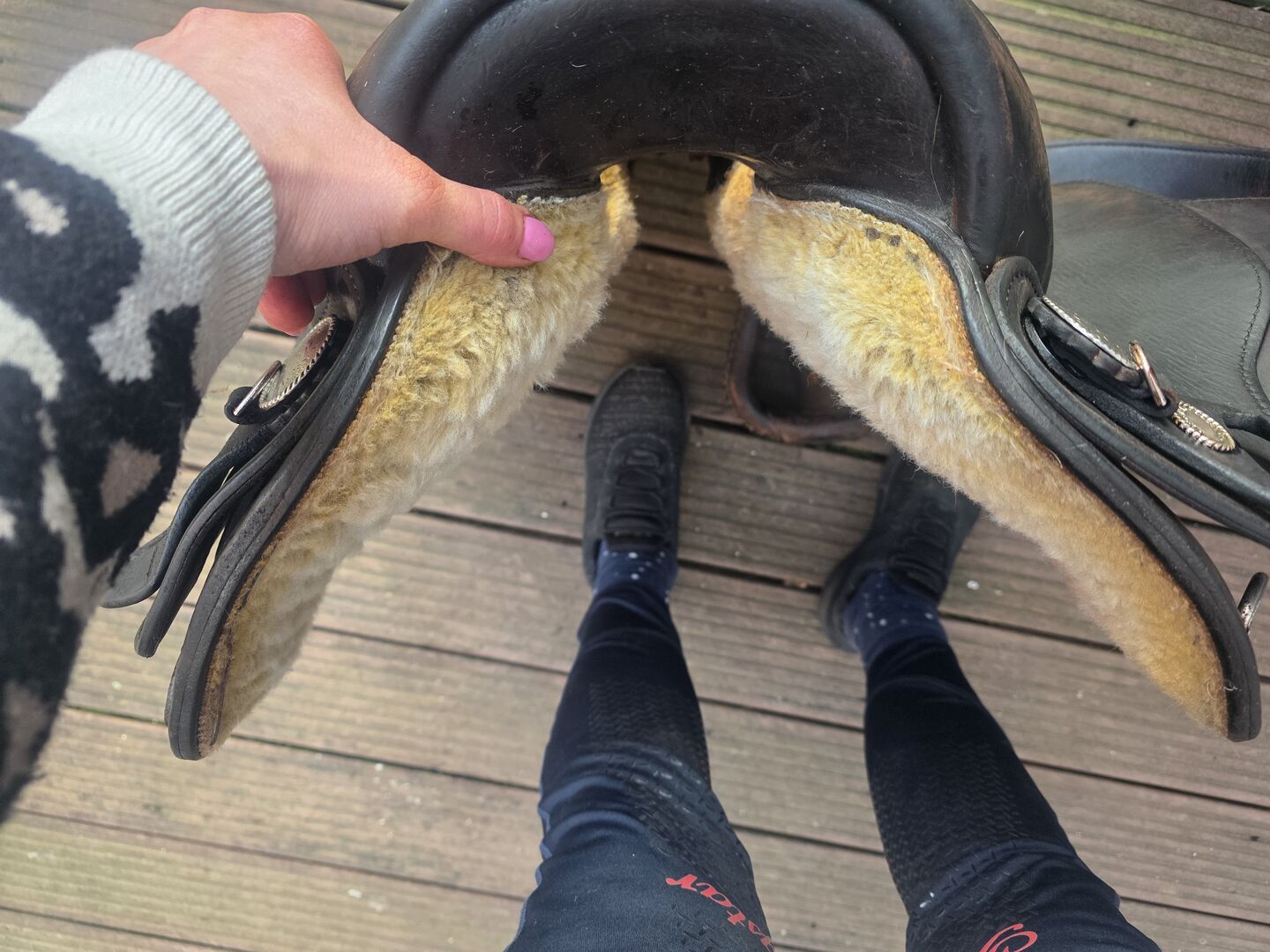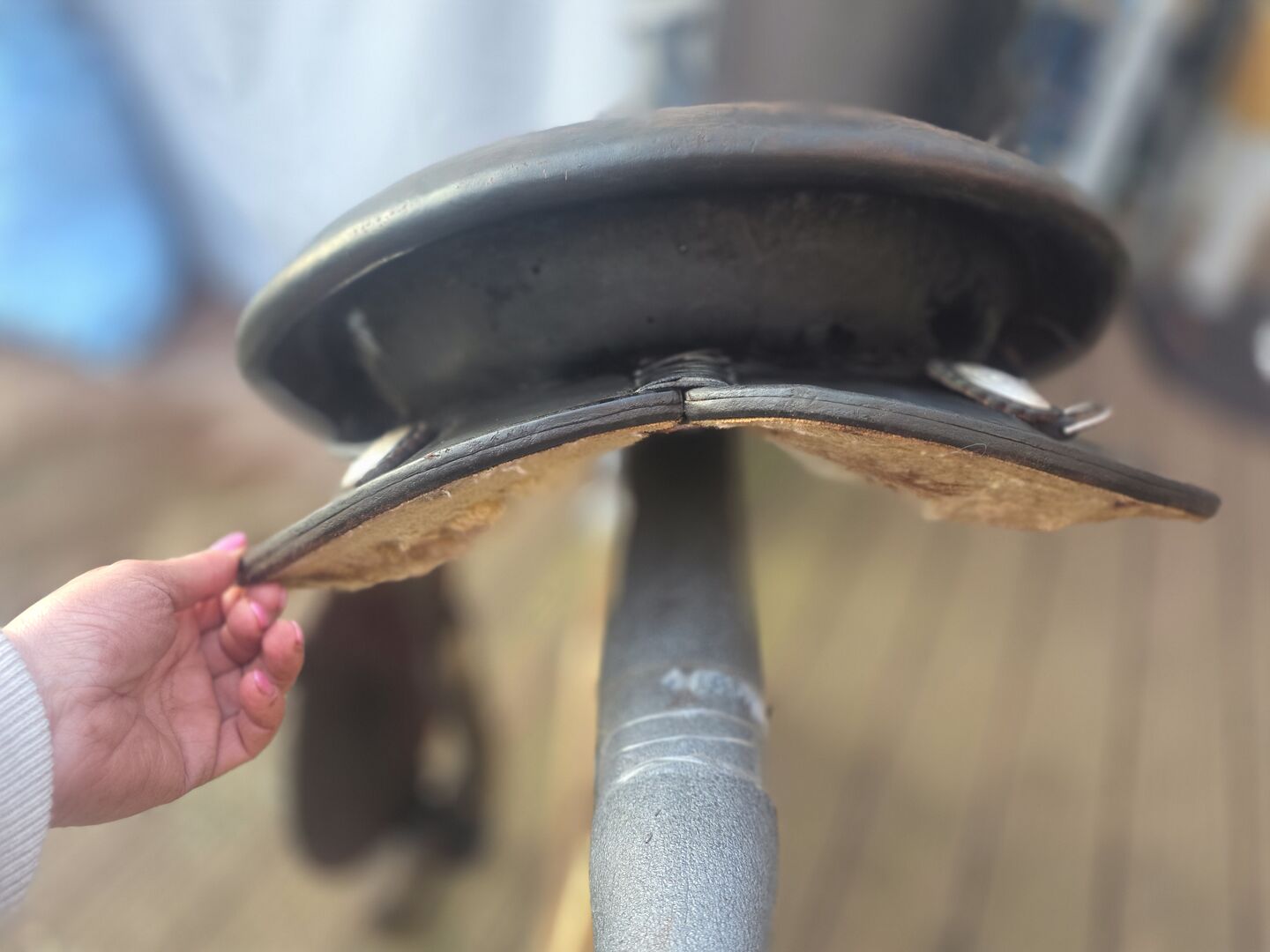 Helaas een kras aan de onderkant omdat ik in het begin geen vulling op het zadelblok had. Alleen het leer is beschadigd. Heeft geen enkele invloed op de functie en het ziet er niet slecht uit omdat je het niet kunt zien.