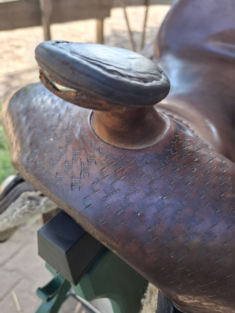 Continentaal Klassiek - Bied oudere Conti aan. We gebruikten het om onze paarden in te rijden, maar ze zijn het nu ontgroeid. Gebruikssporen door ouderdom op cantle en hoorn (zie foto's), maar deze hebben geen invloed op de functionaliteit van het zadel. Neem contact met ons op als je vragen hebt.