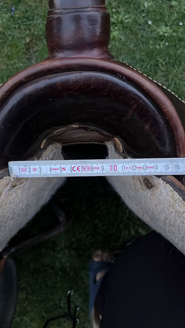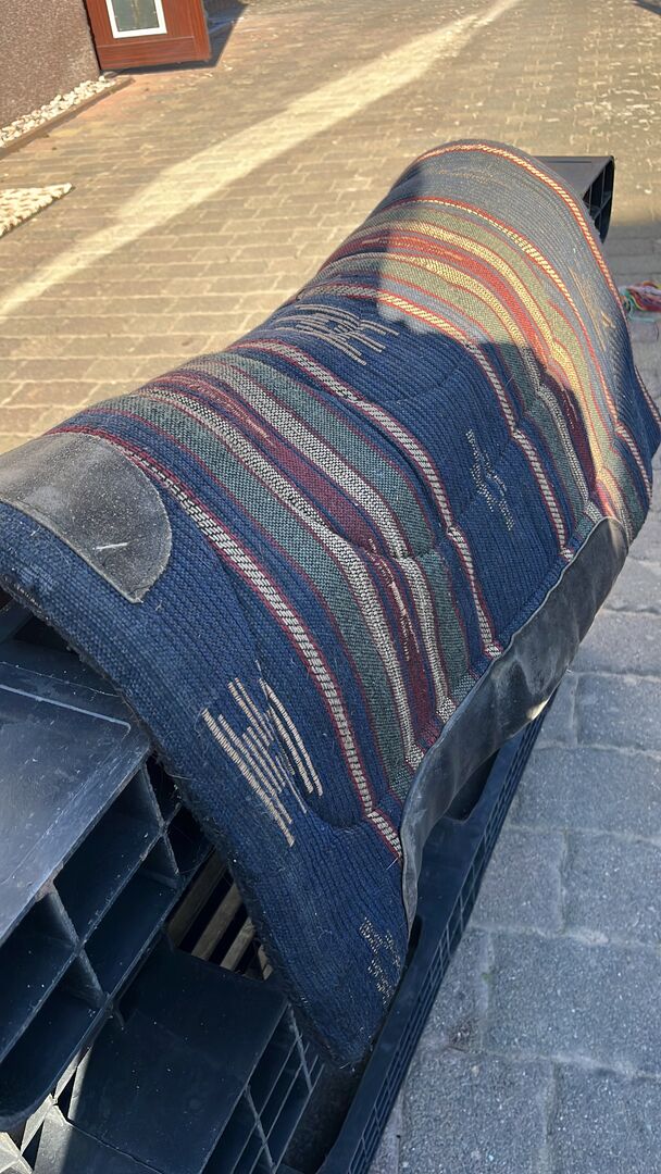 Continental Western Zadel - Zwaar continentaal westernzadel met extra stijgbeugels en onderlegger. Gemonteerd op een quarter horse dat helaas te oud is geworden om het zware zadel te dragen.
