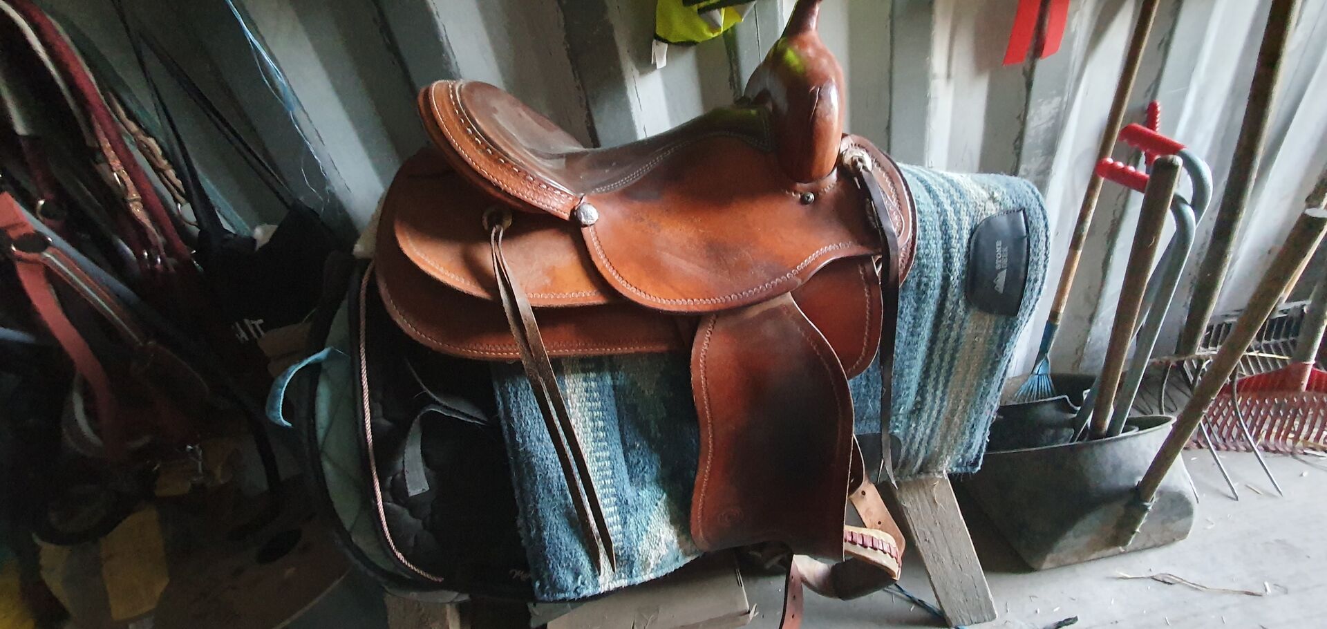 Continental zadel nr. 176, goede staat - Westernzadel van Continental. Het model is nr. 176 en het lag op mijn politieke warmbloed. Helaas is het te smal voor mijn paard. Ik heb het zelf tweedehands gekocht. Het is ongeveer 1 jaar gebruikt en heeft sindsdien gewoon rondgelegen. Stropdasriem en los bilet zijn inbegrepen. Afmetingen staan op de foto's.