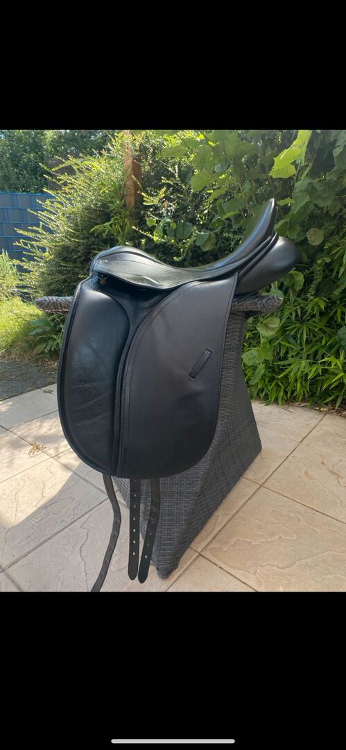 Het zadel is altijd goed verzorgd geweest en is door regelmatige ziekte niet veel gebruikt. Er zijn geen diepe vlekken of iets dergelijks. Verder normale gebruikssporen. Het stelt de ruiter in staat om dicht bij het paard te zitten. Optimaal verstelbaar voor verschillende lichaamstypes dankzij de klittenbanden. Momenteel 3-voudige singel.