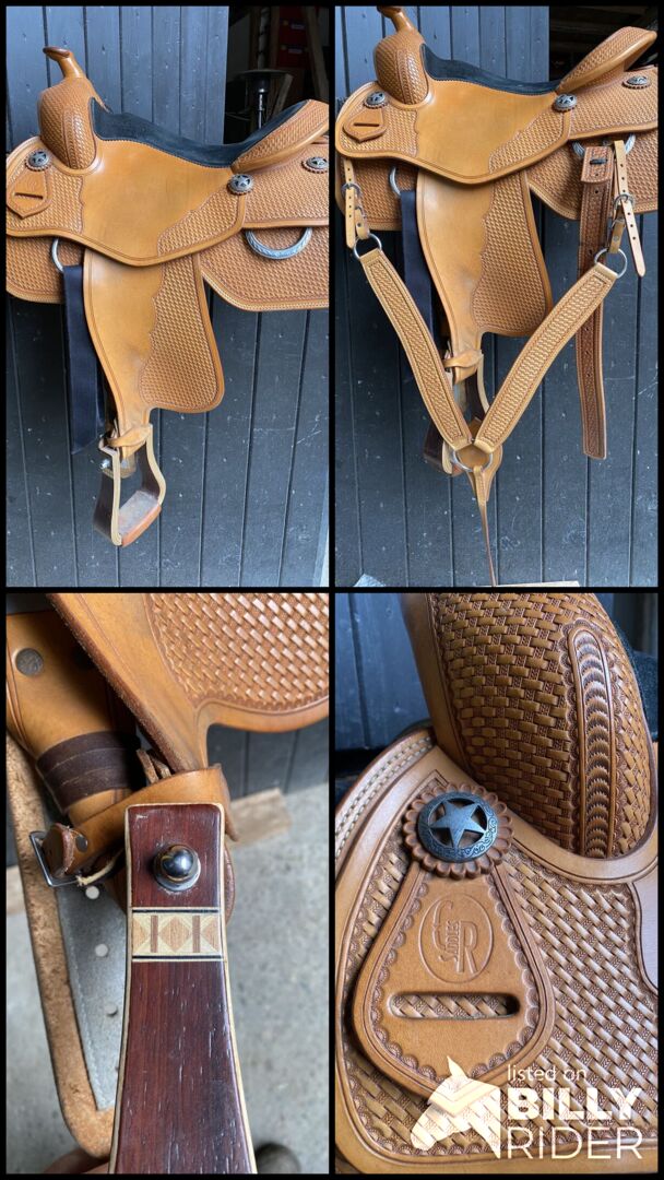 CR Californië Ranch Zadelmakerij 16 inch - Ik bied het afgebeelde CR zadel te koop aan. Het is een Definition met FQH boom (ongeveer 2 mm breder dan de QHllA). Een bijpassend borsttuig en de complete rugcinch zijn ook inbegrepen. Een geweldig zadel, ongelooflijk comfortabel, ideaal voor werk op de baan en ritten. Het zadel is in zeer goede gebruikte staat en wordt alleen bewaard in de zadeltas.