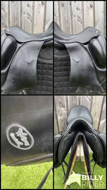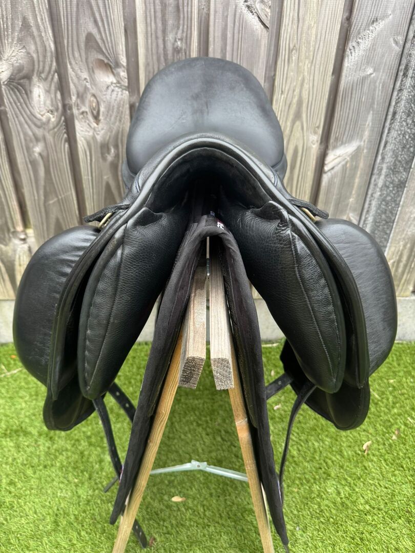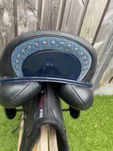 We are offering a Custom Gemini R in 17 inches, a truly eye-catching saddle featuring beautiful blue patent leather details and Swarovski crystals on the cantle. The saddle is in very good condition and combines elegance with top-level craftsmanship.