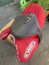 CWD Springzadel - CWD SE02 170 TR 3D - 17 inch - Wij verkopen een goed onderhouden, gebruikt CWD springzadel. Het zadel is een CWD SE02 springzadel met een zitmaat van 17 inch, geproduceerd in 2015. Het heeft een bijzonder nauwsluitende zadelklep met maat 3 en een extra voorwaartse snit. De schuimvulling is speciaal aangepast met een aangepaste paneelcode (805) en extra schoftreliëf (RG).
