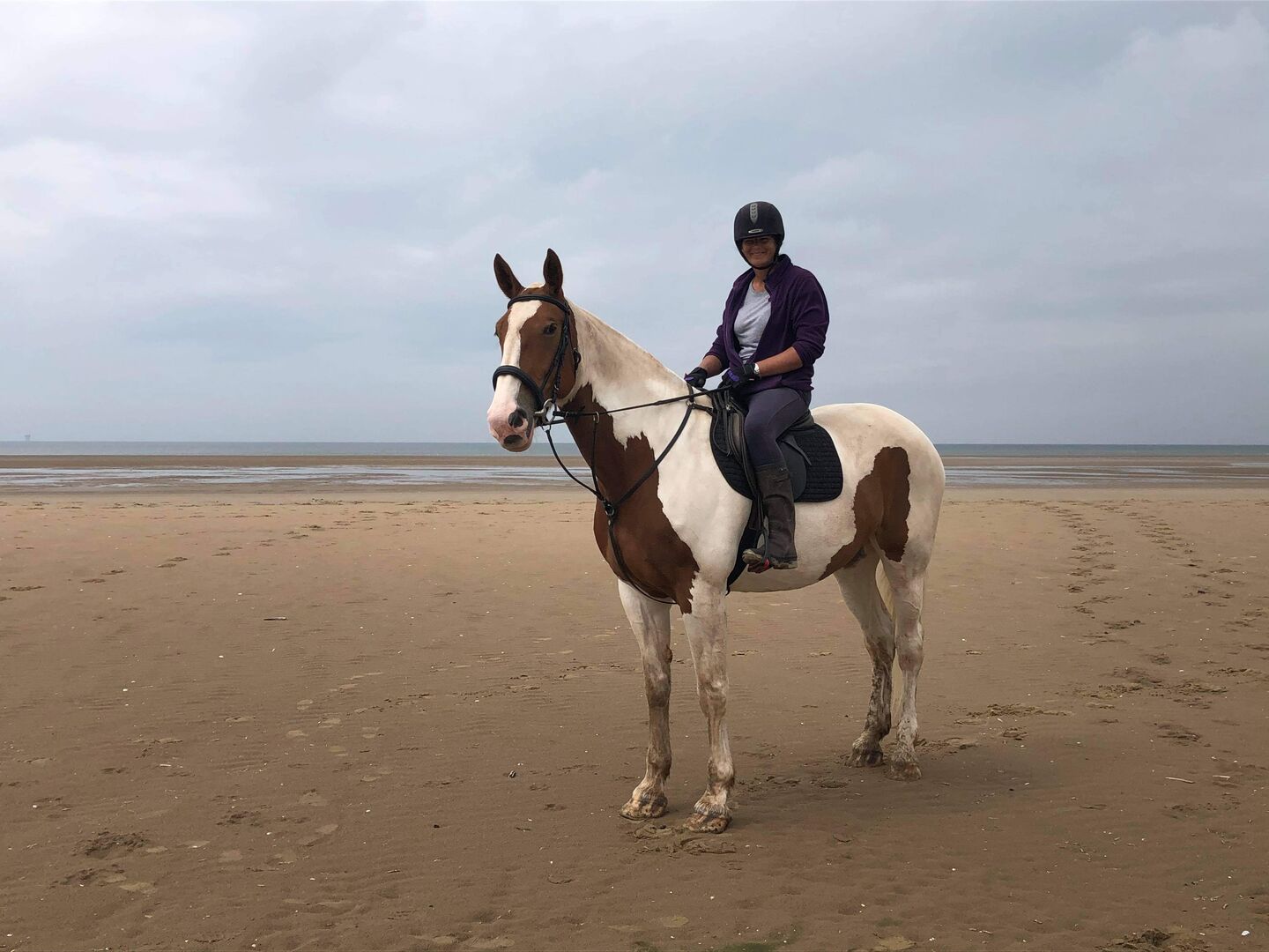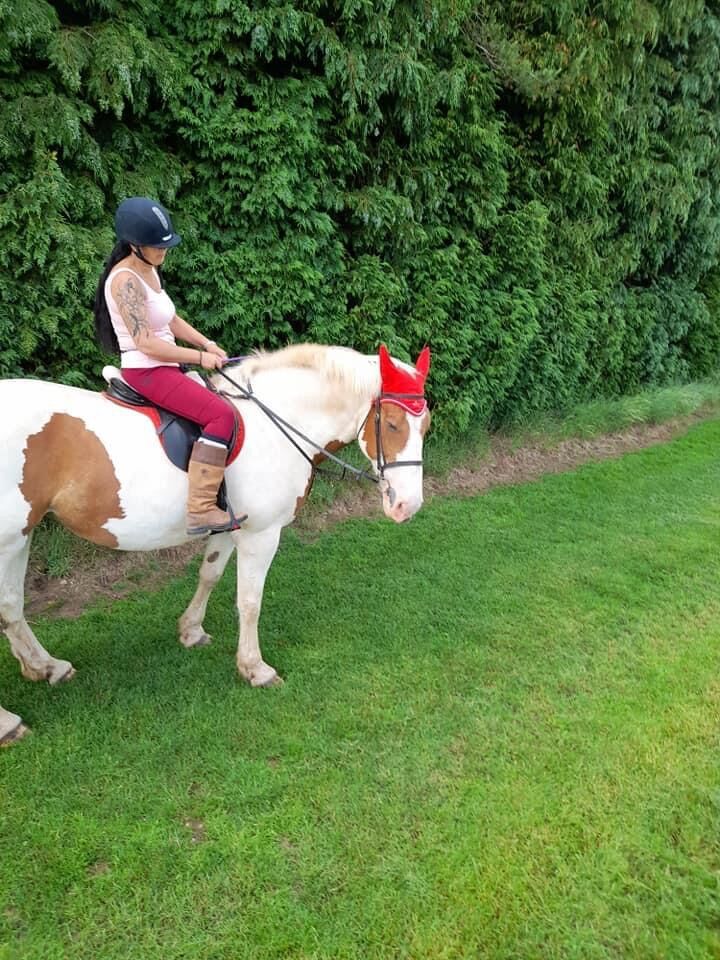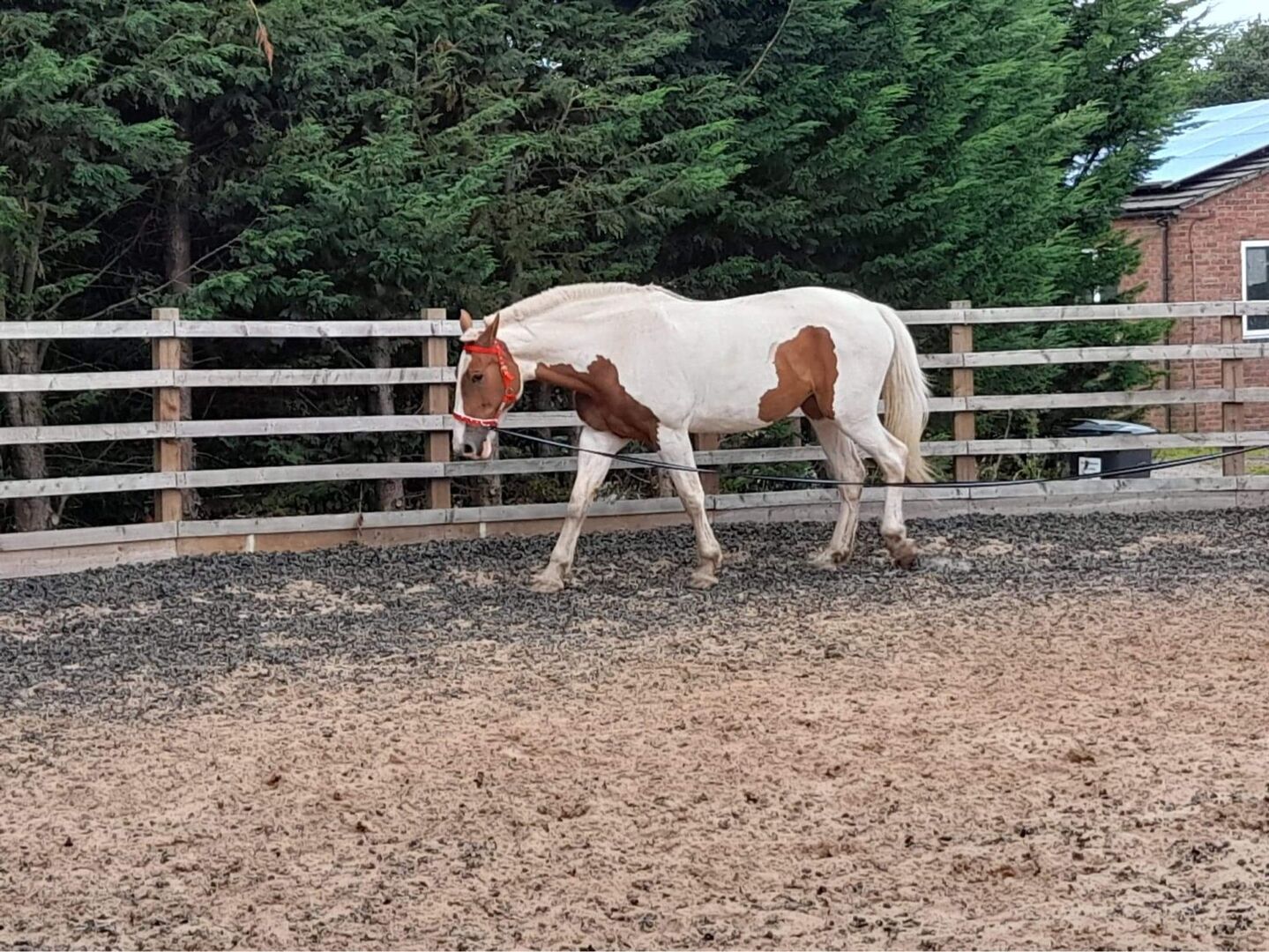 17;2 skewbald Duchess is very laid back but will step up a gear if asked, she has done fun rides farm rides beach rides, has competed in hunter trial , used for hacking and pleasure only my choice but would be great at other things too, she is only for sale as ido not have time and she is too good a horse to waste in the field, she has been ridden by all ages and always looks after her rider , she stands around 17:2 but a big arm chair ride, lives out mostly but enjoys a night in , very well behaved for farrier, vet etc. loads on lorry trailer or box as she has travelled in all , shod on all 4s but has also gone barefoot on hinds . Will be sold with tack and a rug , perfect mother daughter share also