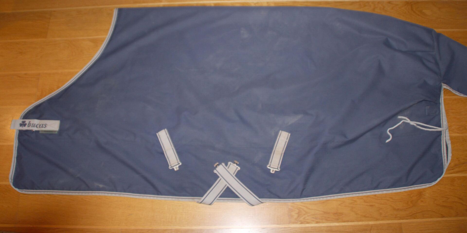 Deken, Bucas, Freedom TO 150, 165 cm RL, kleur: blauw - Vloerkleed, Bucas, Freedom TO 150, 165 cm RL, kleur: blauw, met kruissingels en crupper. Het deken werd gebruikt als betrouwbaar en tegelijkertijd waterdicht wind- en regendeken. Het kleed is gewassen, geïmpregneerd en waterdicht. Een scheur in de buitenstof is professioneel en zo onopvallend mogelijk gerepareerd. Elke laag is apart genaaid en de naden zijn aan de binnenkant gerubberd zodat de deken weer 100% waterdicht is. Vulling 0 g, Stay Dry binnenvoering. Helaas konden enkele lichte vlekken niet volledig worden verwijderd. 59,- € plus verzendkosten. #2475