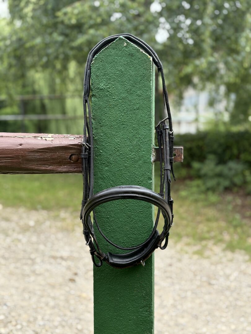 Snaffel werd af en toe gebruikt. Heeft nauwelijks gebruikssporen, dus is in perfecte staat. Wordt verkocht met bijpassende teugels, maar zonder frontriem.