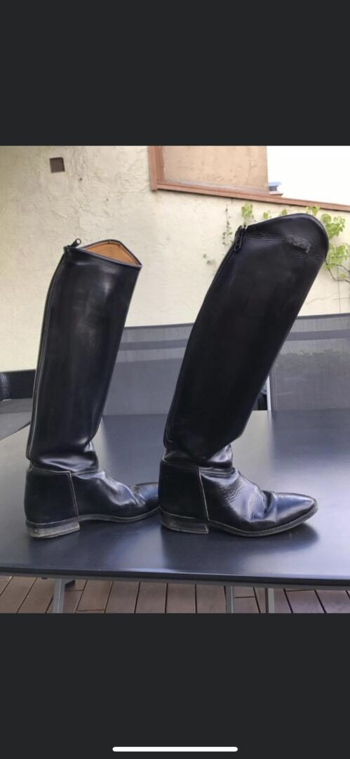 Derby Dressuur Laarzen - Topconditie Derby dressuurlaarzen te koop. De rits is door een schoenmaker aangebracht, daarom is hij waarschijnlijk 1-2 cm breder. Maat 8 breedte 38 (+1-2cm) hoogte 55. Kan ook verzonden worden. Ze zijn gewoon stof aan het verzamelen omdat ze te krap zijn geworden.