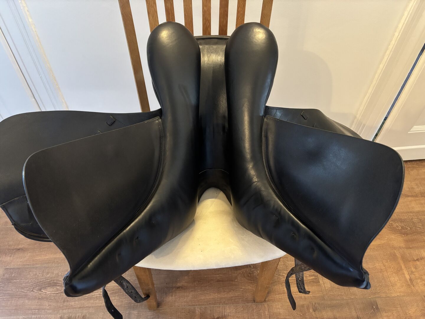 Dessursattel Prestige Milaan 17er zetel 31 kamer van 2014 - Ik verkoop mijn geliefde Milan dressuurzadel omdat het niet meer past op mijn nieuwe paard. Het is altijd goed verzorgd geweest en bewaard in een temperatuur-gecontroleerde kamer met een beschermer. Het is nooit gevallen of iets dergelijks. Het is zwart met een bruine kleur helemaal aan het einde van het zitvlak. Het heeft normale gebruikssporen. Het zadel is regelmatig gecontroleerd en opgevuld door een zadelmaker. Het zadel geeft de ruiter een geweldige rijervaring. Het zadel kan ter plekke bekeken worden. U bent van harte welkom om met uw paard langs te komen en het zadel in mijn bijzijn uit te proberen.