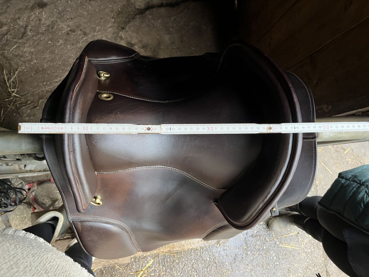 De zadelmaat is S2 en de breedte van de slokdarm is verstelbaar met een inbussleutel. Het zadel heeft ook klittenband en de zadelkleppen zijn vernieuwd.