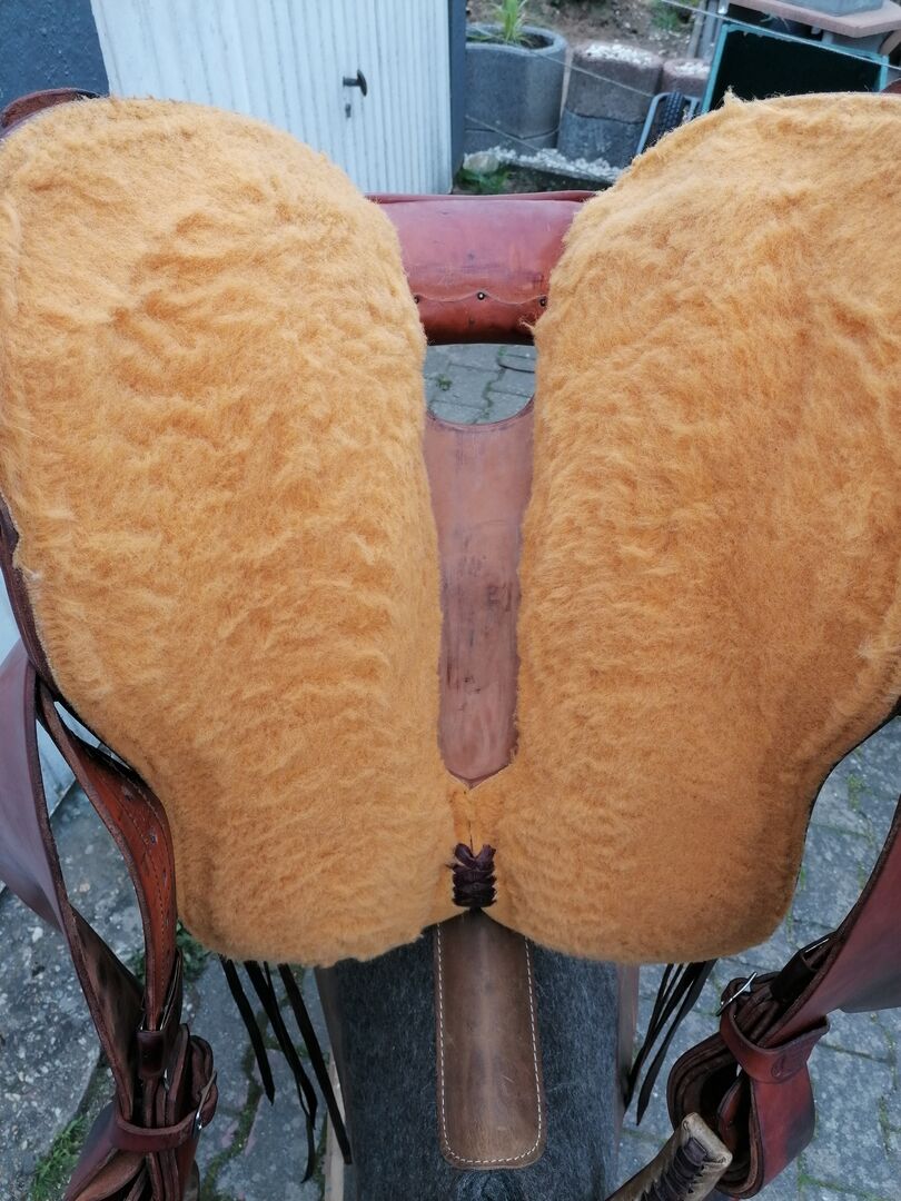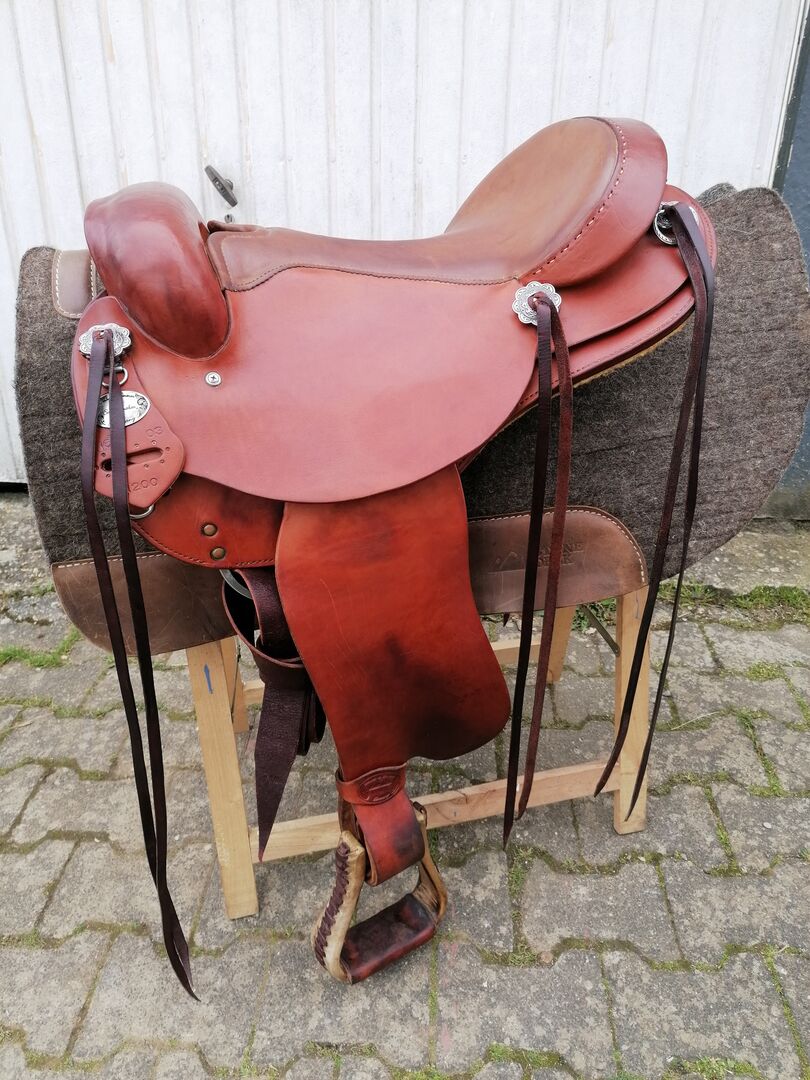 Deuber Endurance Trail Zadel Western Zadel EXTRA kort & breed - Met pijn in het hart doe ik afstand van deze Deuber Endurance 1200, die nauwelijks gebruikt is en in zeer goede staat verkeert. Het zadel was bedoeld voor mijn Haflinger, maar het zadel is gewoon te breed en het hangt nu al drie jaar bij mij thuis. Het zadel is door Jeremiah Watt voorzien van hoogwaardige conchos.