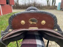 Deuber Jerez SKL S2 Bückeburg model schoolzadel met nieuwe kleine panelen - supercomfortabel en zeer mooi barokzadel van Deuber in het model van de Hofreitschule Bückeburg met bijna nieuwe, korte klittenbandpanelen, in zwart/bruin met antieke afwerking en messing beslag. Inclusief zadelklep, waterdichte zadelhoes, sleutel voor het traploos verstellen van de kamer, barokke stijgbeugels in messing, mono stijgbeugelriemen en Grandeur zadeldek.