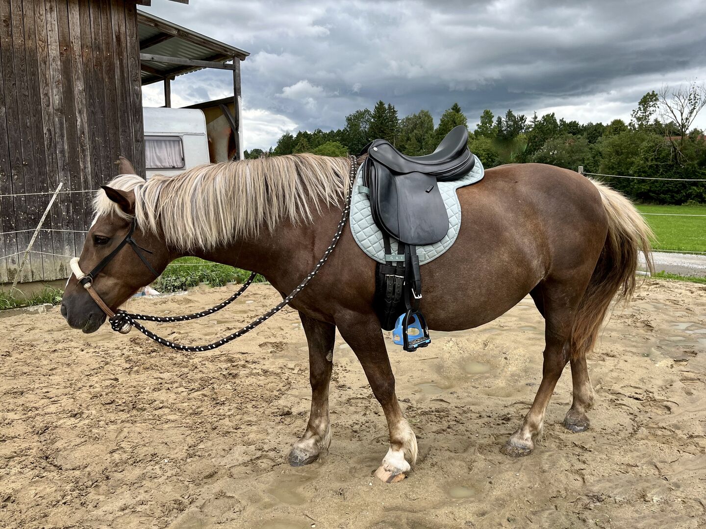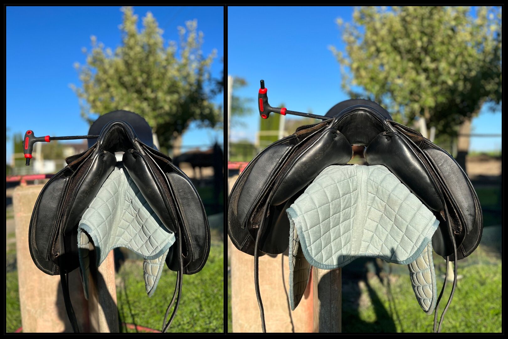 Het zadel is 2010, zeer goed onderhouden en in goede staat, er is niet te veel mee gereden. De singelstoten zijn nog origineel, maar kunnen op elk moment vervangen worden zonder zadelmaker. (Alleen lusjes erin).
