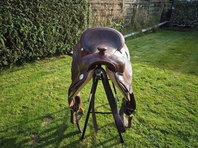 Deuber & Partner Allrounder inbinden/uitwisselen is ook mogelijk - Ik verkoop mijn Deuber & Partner westernzadel dat in zeer goede staat is. Het zadel is ideaal voor smalle en korte paarden. De exacte beschrijving vind je op de bijgevoegde foto's of op de factuur. Gekocht, zie factuur van 08/08/2023, niet gebruikt sinds maart 2024, de prijs was 3.200 euro. Ik verkoop het voor 2.100 euro VB, een ruil voor een gelijkwaardig dressuur, barok, Spaans of vergelijkbaar. Zadel zou ook mogelijk zijn .... voor een slanke QH, korte rug, weinig schoft .......... gewoon iets te bieden. Neem contact met me op als je vragen hebt!