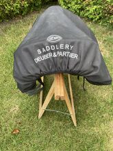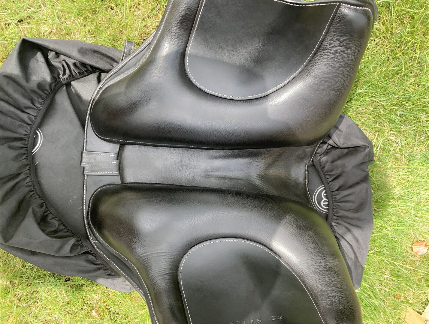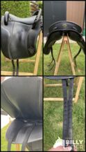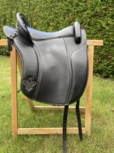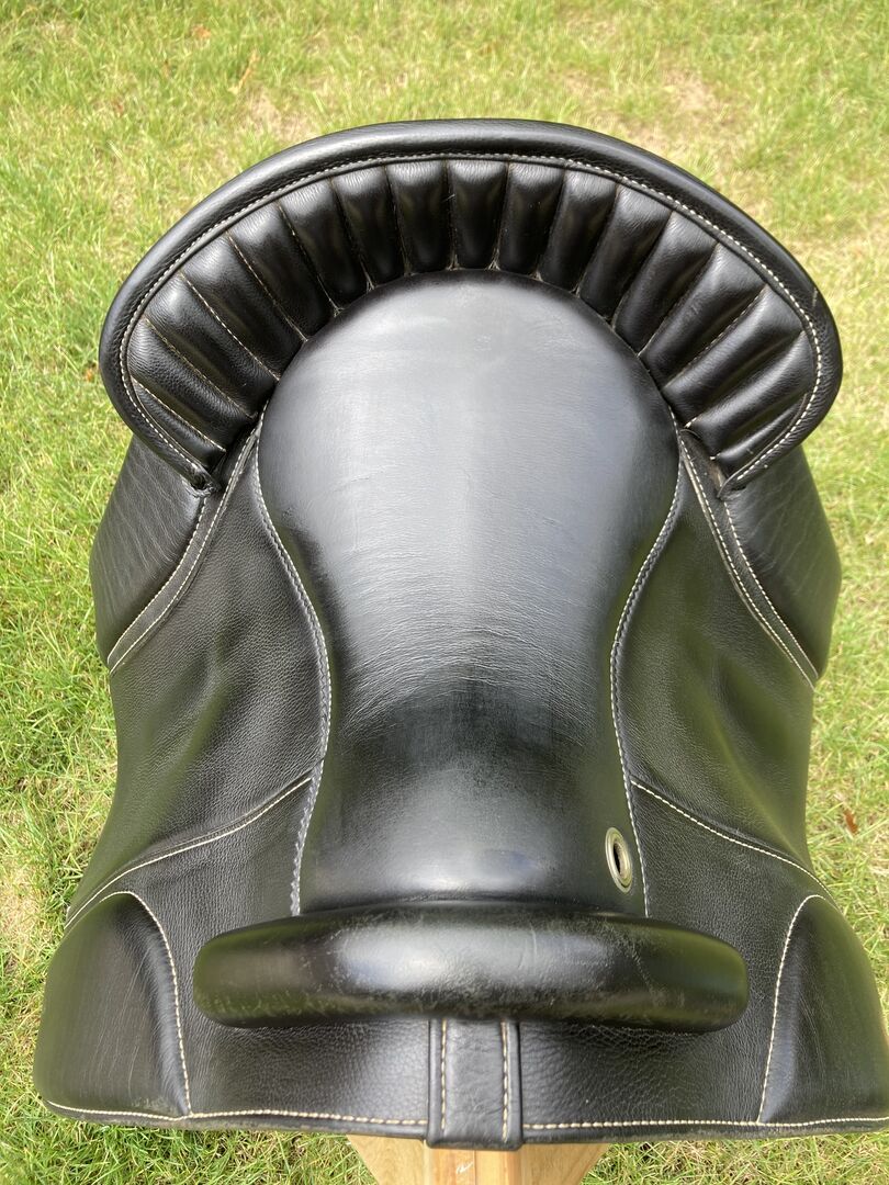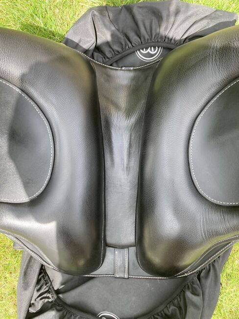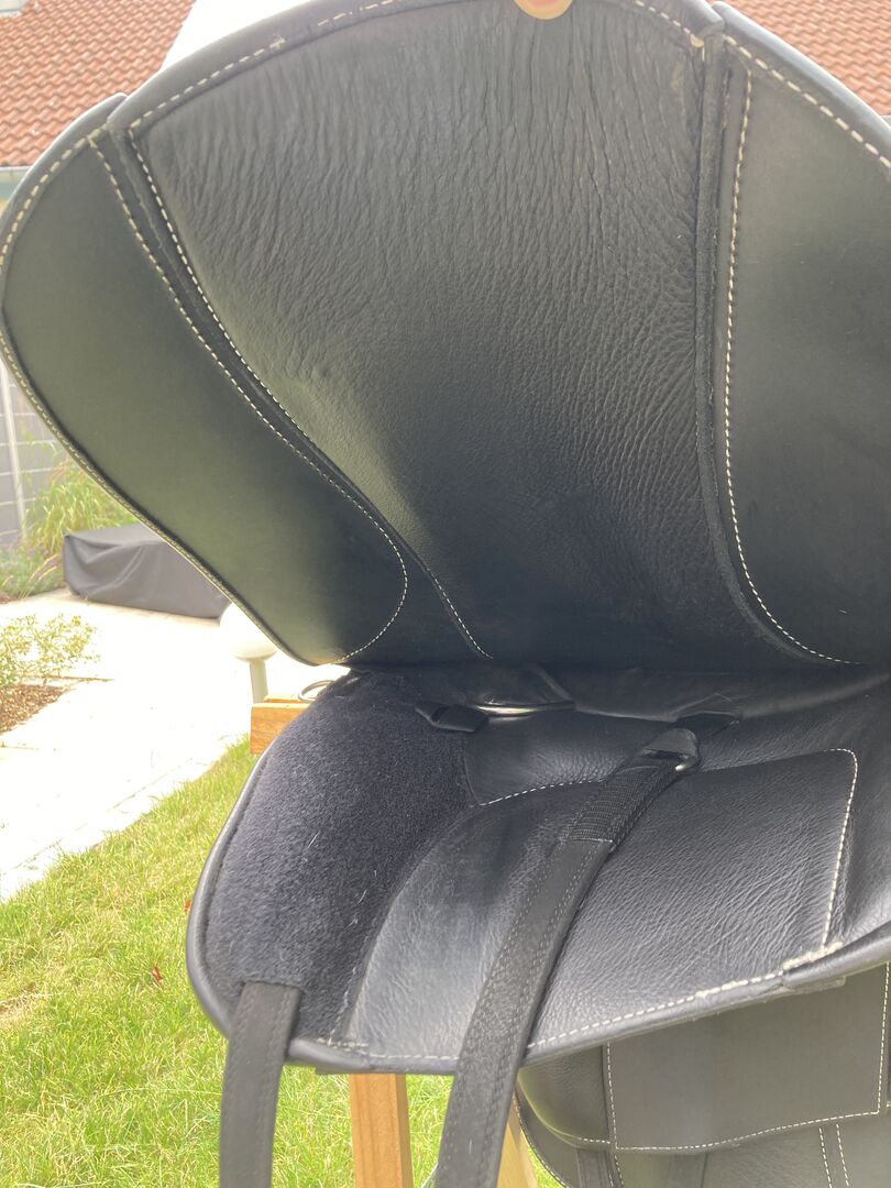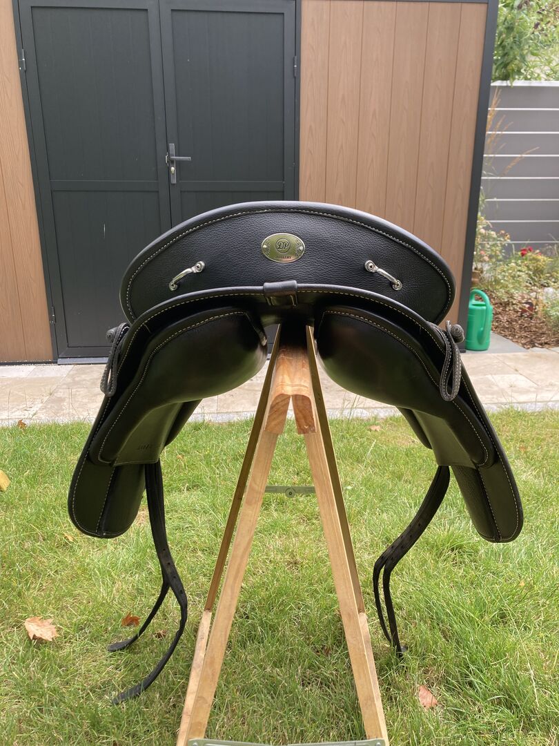 Het zadel is in zeer goede staat met weinig gebruikssporen. Het heeft geen scheuren of beschadigingen. De zitting en het zachte kniegedeelte zijn zeer comfortabel met een veilig en aangenaam gevoel. Het zadel is zowel geschikt voor dressuurwerk als voor lange, ontspannen ritten. Het wordt geleverd met een zadeldekje en stijgbeugelbevestigingsriempjes. Daarnaast kunnen klittenband dressuurblokken, een zadelklep met bijpassend schuimrubber in blauw/zwart en een inbussleutel voor het onafhankelijk verstellen van de slokdarmplaat worden aangeschaft. (Prijs in overleg). Particuliere verkoop - geen garantie of retournering. Als je geïnteresseerd bent of vragen hebt, neem dan contact op - het zadel kan op afspraak worden bekeken en uitgeprobeerd.