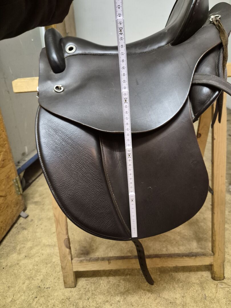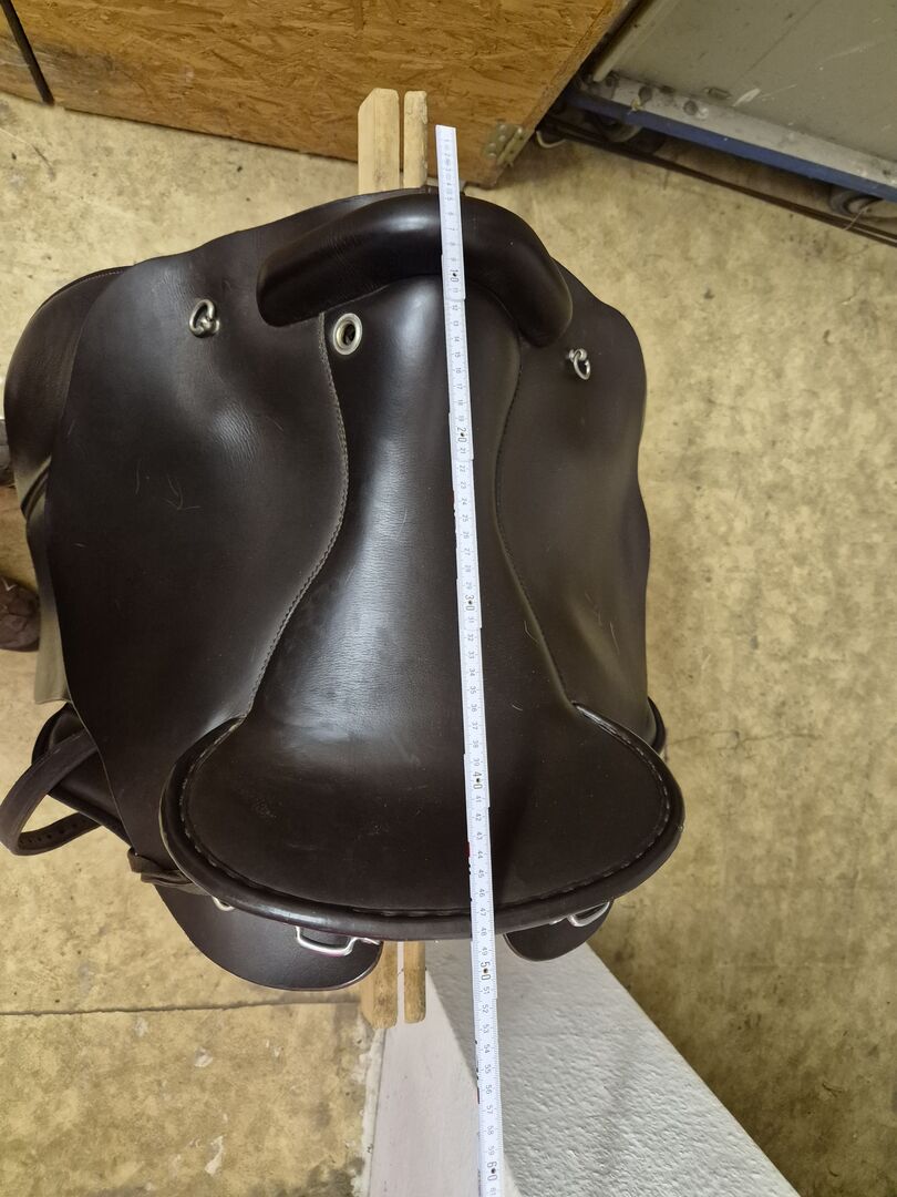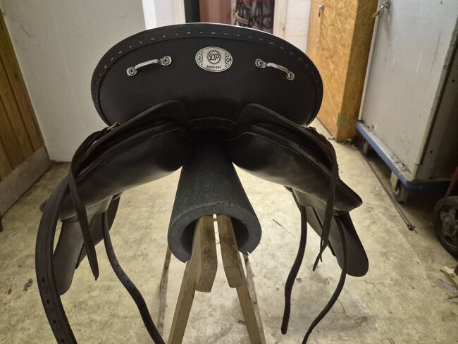 Deuber&Partner, vrijetijdszadel, reiszadel voor koudbloedigen, bruin - Comfortabel DP Saddlery/Deuber zadel, vrijetijdszadel voor koudbloedigen, kleplengte 38cm, lengte 48cn, veiligheidsbevestiging voor stijgbeugels, diverse oogjes voor lichte bagage op lange ritten, bruin, met zadelsleutel voor boomaanpassing, zeer goed onderhouden staat, laatste aanpassing door zadelmaker met vulling 10/2025, te koop in Bernau bij Berlijn. Verzending via Hermes.
