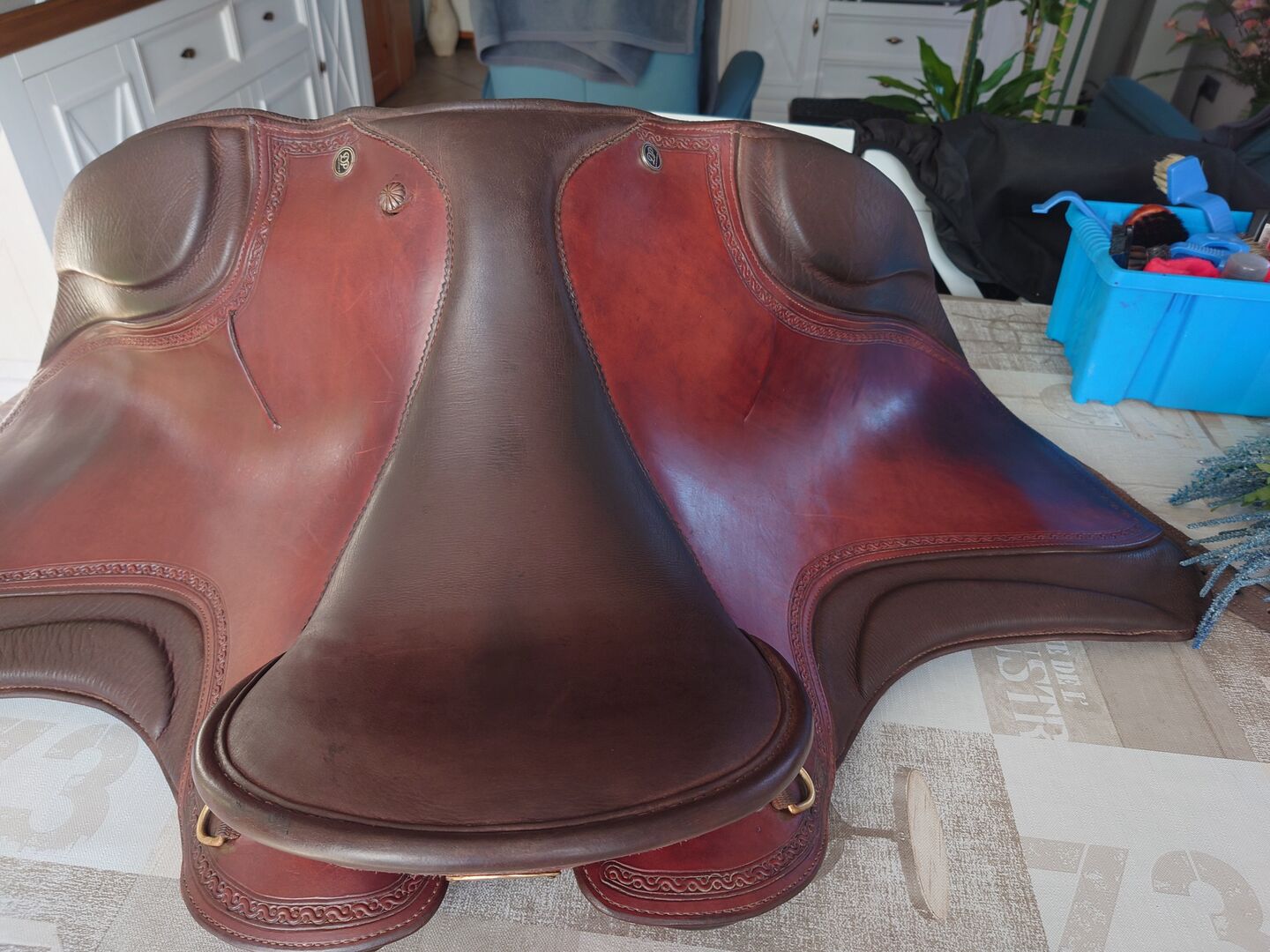 Deuber zadel Impuls Contur SKL S2 / 16,5 -kamer verstelbaar - Bied een weinig gebruikt zadel te koop aan, het is alleen gebruikt als tweede zadel, goed onderhouden en altijd droog opgeslagen, gekocht in 2019, het is iets donkerder geworden aan de onderkant van de klep van de laarzen. Het heeft een Ultra Flex zadelboom met traploos verstelbare kamerbreedte De panelen kunnen door elke lokale zadelmaker vervangen worden. De kleur is Havana, messing beslag, klittenband en een zacht kniestuk. Lengte ongeveer 49 cm, dus goed voor korte ruggen. Ik betaal via PayPal.