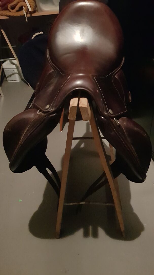 Devoucoux Makila bruin 18" - Ik bied te koop aan mijn gebruikte dressuurzadel van het Franse merk Devoucoux, model MAKILA, met latex panelen, mono flap, rechte panelen. Franse 18" (gelijk aan 17,5) flap A2, kleur roodbruin/havana. Het zadel heeft gebruikssporen maar is in zeer goede staat.