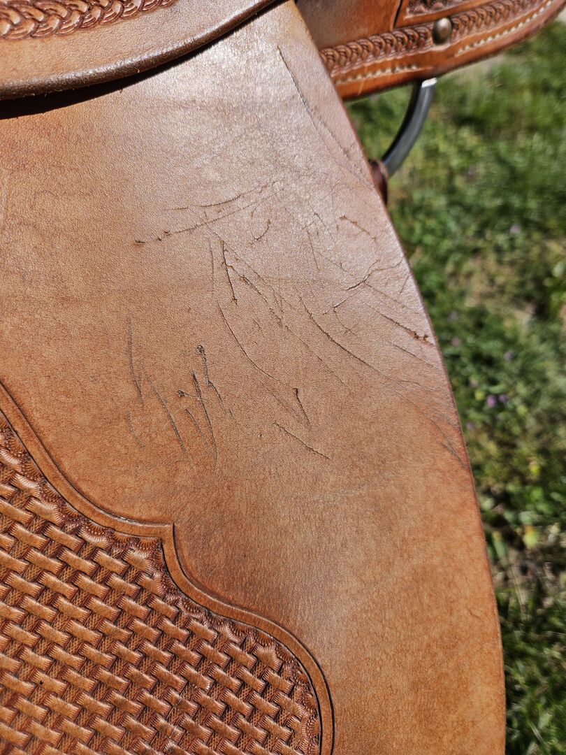 Diamond C Western Zadel - Ik bied een Diamond C westernzadel aan omdat mijn paard veel spieren heeft opgebouwd en ik een nieuw zadel nodig heb. Het lag tot 4 maanden geleden op mijn draver, die een verhoogde schoft heeft. Het zadel is nog in perfecte staat, maar heeft verschillende krassen (zie foto's). De breedte van de slokdarm is 18 cm.