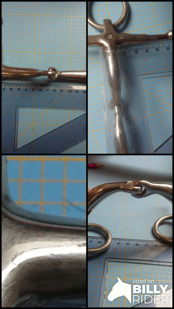 Dijbeen snaffel anatomisch 12,5cm roestvrij staal - Enkel bit dij / knevelsluiting Fulmer, anatomisch gevormd, met losse kleine ringen (4cm diameter), massief, roestvrij staal, van C & B, relatief korte dijen, licht naar buiten gebogen aan de bovenkant.