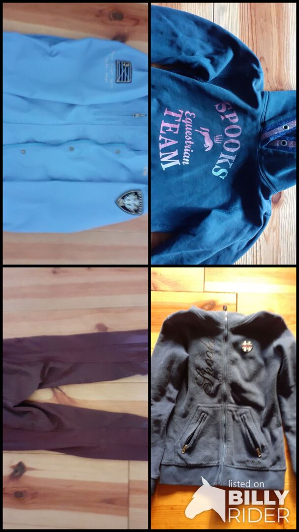 Diverse rijkleding Eskadron, Imperial Riding, Spooks - 1.HV Polo regenblouson lichtblauw 50€ 2.gilet blauw maat S (nieuw) 30€ 3.training shirt maat S 15€ 4.rijbroek wijn rood maat 34 25€ 5.hoodie van Spooks maat S 40€ 6.fleece jas Spooks blauw 20€ Gr.S 7.hoodie Spooks maat XS 15€ 8.hoodie Eskadron maat XS 20€ 9.rijbroek Eliquilibre 10€ Gr.164 10.pullover met rits blauw Gr.164 30€ 11.winter rijbroek HV Polo Gr.36 40€ 12.riding blouson blauw gevoerd Gr.S 50€