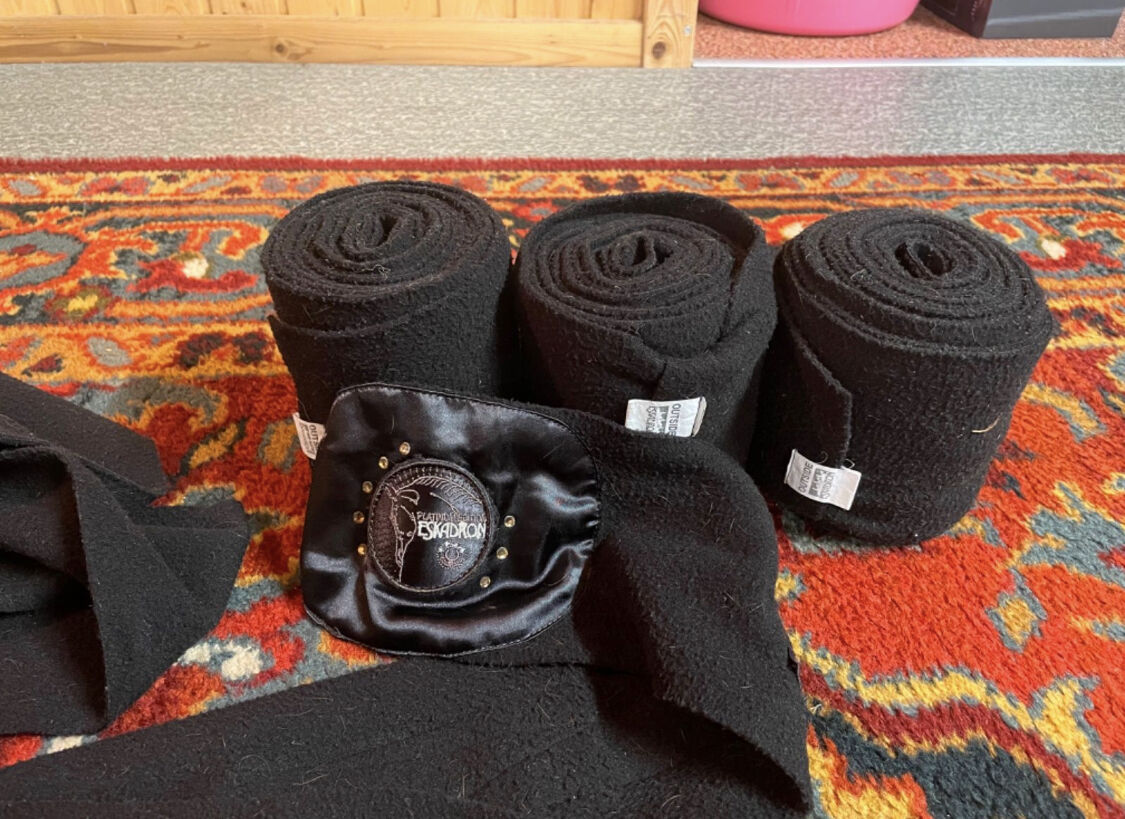 - Vier nieuwe, origineel verpakte Equine Microtec bandages in zwart (verkoopprijs: 20€). - Twee Elastische bandages in zwart, zijn in zeer goede staat omdat ze niet veel gebruikt zijn (verkoopprijs: 10€) - Vier Eskadron zwachtels in bruin met glitter op de sluiting, zijn in goede staat omdat ze maar twee keer gebruikt zijn (verkoopprijs: 20€) - Twee lichtblauwe zwachtels, zijn gebruikt maar in goede staat (verkoopprijs: 10€) - Vier Kavalkade zwachtels in lichtgroen, zijn slechts een keer gebruikt en zijn in zeer goede staat (Verkoopprijs: 15€) - Vier donkergroene zwachtels, zijn gebruikt maar in goede staat (Verkoopprijs: 15€) - Vier oranje zwachtels, weinig gebruikt in goede staat (verkoopprijs: 15€) - Vier koraal zwachtels, slechts twee keer gebruikt en in zeer goede staat (Verkoopprijs: 15€) - Vier lichtblauw/groene bandages (Icefarbe), in goede staat als weinig gebruikt (Verkoopprijs: 15€) - Eskadron Climatex bandage pads (set van 2) in zwart, zijn gebruikt maar zonder gaten of iets dergelijks, nieuwprijs: 30€ (Verkoopprijs: 15€) - Waldhausen verbandkompressen met klittenband (set van 4) in wit, zijn gebruikt maar in goede staat, originele prijs: 25€ (verkoopprijs: 15€) - Eskadron verbandkompressen Climatex (set van 2 45cm) in wit, weinig gebruikt en in zeer goede staat, originele prijs was 30€ (verkoopprijs: 15€) - Eskadron Climatex bandage pads (set van 2) in blauw, weinig gebruikt en in zeer goede staat, originele prijs 30€ (winkelprijs: 15€) - TransHorseSport bandage pads met versteviging in de hoef in grijs (set van 2), weinig gebruikt en in goede staat, originele prijs was 50 € (verkoopprijs: 20 €)