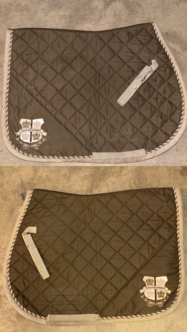 Diverse zadeldekjes - Hallo allemaal! We hebben onze kelder opgeruimd toen we verhuisden en we hebben een aantal zadeldekjes gevonden. Ze hebben allemaal normale gebruikssporen en zijn ONGEWASD! -Ik denk dat sommige vlekken er in de was wel uit zullen komen :) De meeste zijn in dressuur WB en het Eskadron zadeldek is in VS.