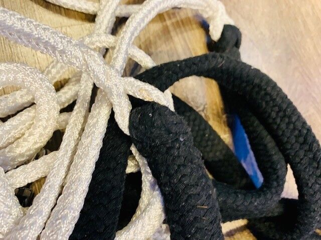 Doppellonge met vier Umlenkrollen - Ich biete eine schöne, neuwertige Doppellonge, die kaum gebraucht wurde. Ze is absoluut in orde, vertoont geen gebreken of defecten en is frisch gewaschen (Nichtraucherhaushalt). Het is zwart-wit en heeft vier Umlenkrollen mit Karabiner-Haken en aan het einde twee Karabinerhaken. Het zwarte gedeelte kan goed in de hand gehouden worden. Ich verkaufe mein Zubehör, weil ich meine Stute in Rente geschickt habe.