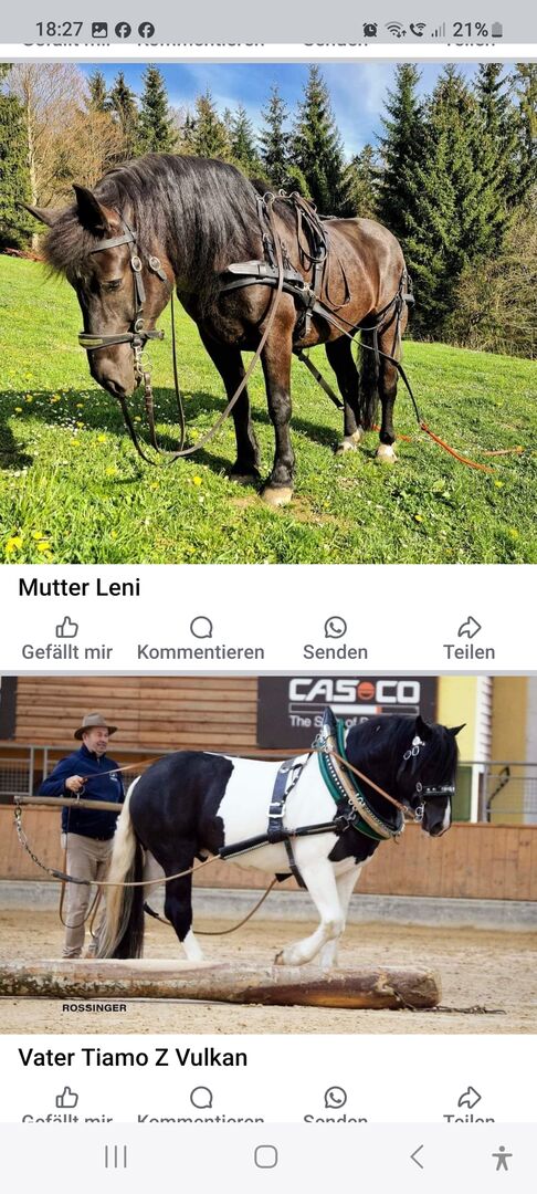 Dream of a Noriker merrie 4 maanden - LUCY, is op zoek naar haar nieuwe thuis. Ze is nieuwsgierig, weet hoe ze aan de lijn moet lopen, hoeven krabben, water sproeien, een tractor gebruiken, hond .... en is een compleet lid van de kudde. Een uitstekende stamboom. Neem contact met ons op als u geïnteresseerd bent. BEZICHTIGING ALTIJD MOGELIJK O664/9156347 Stal in het Opper Mühlviertel. Vader cheque hengst Tiamo Z Vulkan naar Taigan Vulkan XVI. MOEDER Lena naar Gabor Diamant XIII. Verdere informatie
