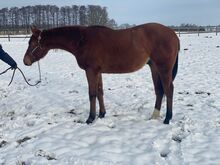 Dream Quarter Horse nakomeling op zoek naar een ondersteunend thuis - Plaats: 27383 Scheeßel Kruzinonagreenline, Quarter Horse ruin, geboren op 23.05.2024, in de kleur Bay, met een geschatte eindhoogte van ca. 160 cm, is een mooie, correct gebouwde en zeer goed ontwikkelde jonge ruin met een evenwichtige bespiering en een harmonieuze bouw. Jacob toont soepele, goede bewegingen en heeft een zeer goede allround- en plezierafstamming, waardoor hij ideaal is als toekomstig sportpaard voor de plezier- en allroundklassen. (Keep On Crusin x Green With Invy). Hij heeft een zeer vriendelijk, mensgericht karakter, is ruimdenkend, nieuwsgierig, attent, ongecompliceerd en extreem braaf en makkelijk in de omgang. De ruin is leergierig, getalenteerd en laat niets te wensen over. Hij is braaf en coöperatief bij de hoefsmid en dierenarts. Jacob is gezond, 6-panel n/n, gevaccineerd en regelmatig ontwormd, en heeft ook regelmatig bloedonderzoek. Hij is soortgericht opgevoed en is bekend met boxen en open stallen. Jacob heeft de volledige veulen 1 x 1 onder de knie, is halstertrainer en rijdt zonder problemen op een trailer. Er zit een klein litteken op zijn voorbeen, maar dit heeft geen enkele invloed op hem. Hij komt in aanmerking voor deelname aan de DQHA Futurity, wordt betaald voor het EWU young horse programma en zijn broers en zussen zijn al succesvol in de all-round sport. Het is met een zwaar hart dat hij wordt overgedragen aan een liefdevol en ondersteunend thuis vanwege zijn pensioen uit de paardensport. Hij is een geweldig jong paard met geweldige vooruitzichten en de beste omstandigheden voor een succesvolle toekomst in de sport.