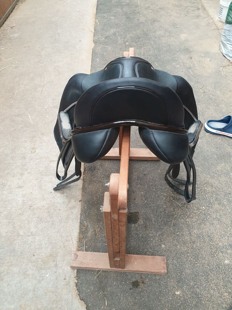Dresch dressuurzadel bijna nieuw - Verkoop van een bijna nieuw Dresch dressuurzadel. De zitmaat is 18 inch, maar is iets kleiner (ik rijd normaal op 17,5'). De kamer kan koud worden afgesteld op het moment is hij nogal breed. De zadelboom is bijzonder geschikt voor paarden met een dakvormige rug. Ik zou u graag in contact brengen met de zadelmaker bij Dresch als u vragen heeft over de pasvorm. Helaas is mijn jonge paard zo snel gegroeid dat het niet meer past. Aangezien dit een particuliere verkoop is, geen garantie en geen retourzendingen